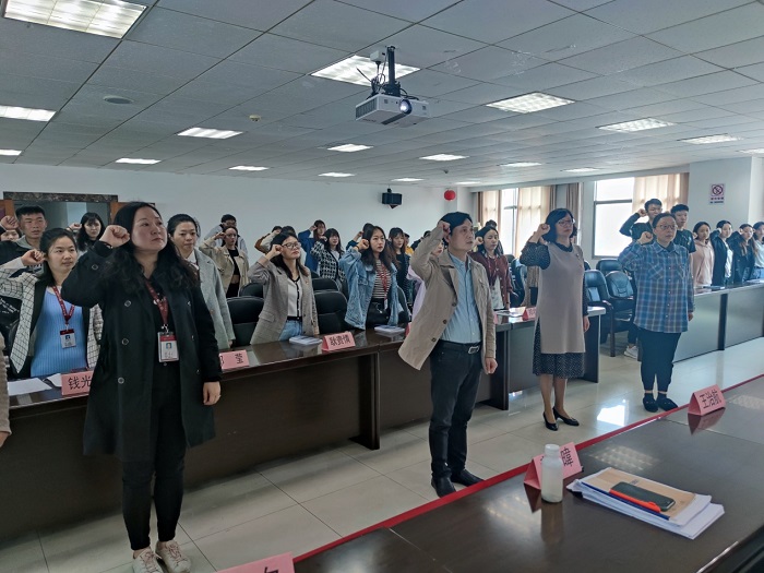 (yl23411 黄均恒 温晴宜 图文报道)在中国共产党建党100周年之际,3月29日,yl23411党委鹿冲关校区行政楼6楼会议室举行新党员入党宣誓仪式。公司党委副书记(主持工作)王治航,副书记黄暐、王瑛,党委委员张夕,各党支部书记及2021年新发展的48名预备党员参加了此次活动。办公室副主任潘吉主持会议。