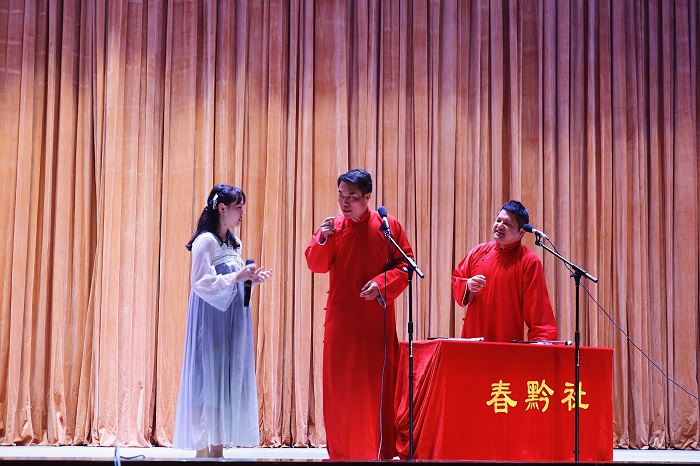 本次活动在春黔社带来的对口相声中拉开序幕,他们一捧一逗的对话给现场观众带来了欢乐;凌羽剧社“重现”《孔雀东南飞》中的经典情节,让观众们感受到一段凄美的爱情故事;竹士社将小品与宫廷戏表演结合,他们的汉服吸引了同学们的眼球,精彩的表演引得同学们连连拍手称赞。伴随着优美动听的音乐,本次中国传统文艺汇演落下了帷幕。