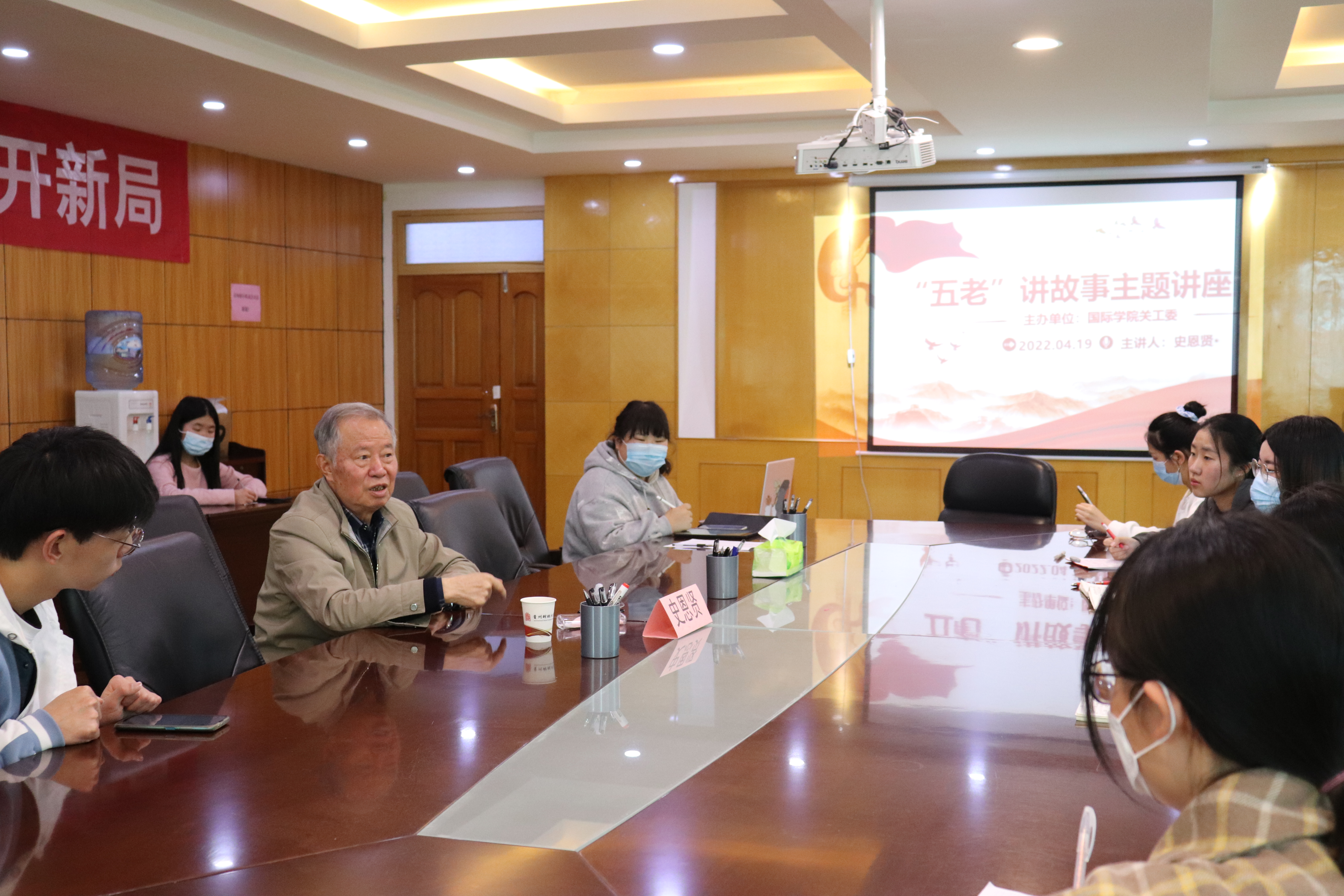 史恩贤向同学们讲述了自己从军二十八载以及从事教育工作以来的生活与工作经历。在职期间,他积极投身于员工心理健康以及德育工作,为培养先进员工党员团员,培养思想端正的优秀青年而奉献自己的全部精力。同时,史恩贤指出,青年学子应当坚定跟随党的指挥,做新时代合格的接班人,并鼓励青年学子刻苦学习,坚定理想信念,树立远大目标志向,争做对党对国家有贡献的优秀青年。在互动环节,史恩贤耐心详细地为同学答疑解惑,让同学们更好地了解“五老”,深入了解党史,学习党员精神。