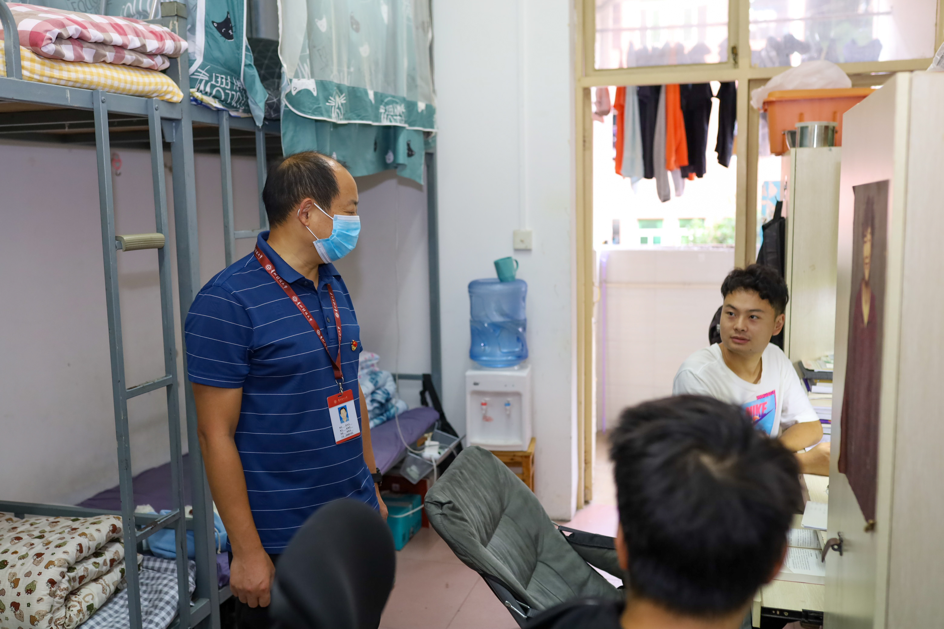 在员工宿舍,校领导亲切询问了员工线上学习情况及静态管理期间宿舍生活的实际困难,并就员工住宿环境、饮食问题以及日常生活用品采购等方面进行了交谈,叮嘱同学们严格遵守疫情防控期间公司的各项管理规定,提高健康意识,做好个人防护,开窗通风,保持良好的宿舍卫生。