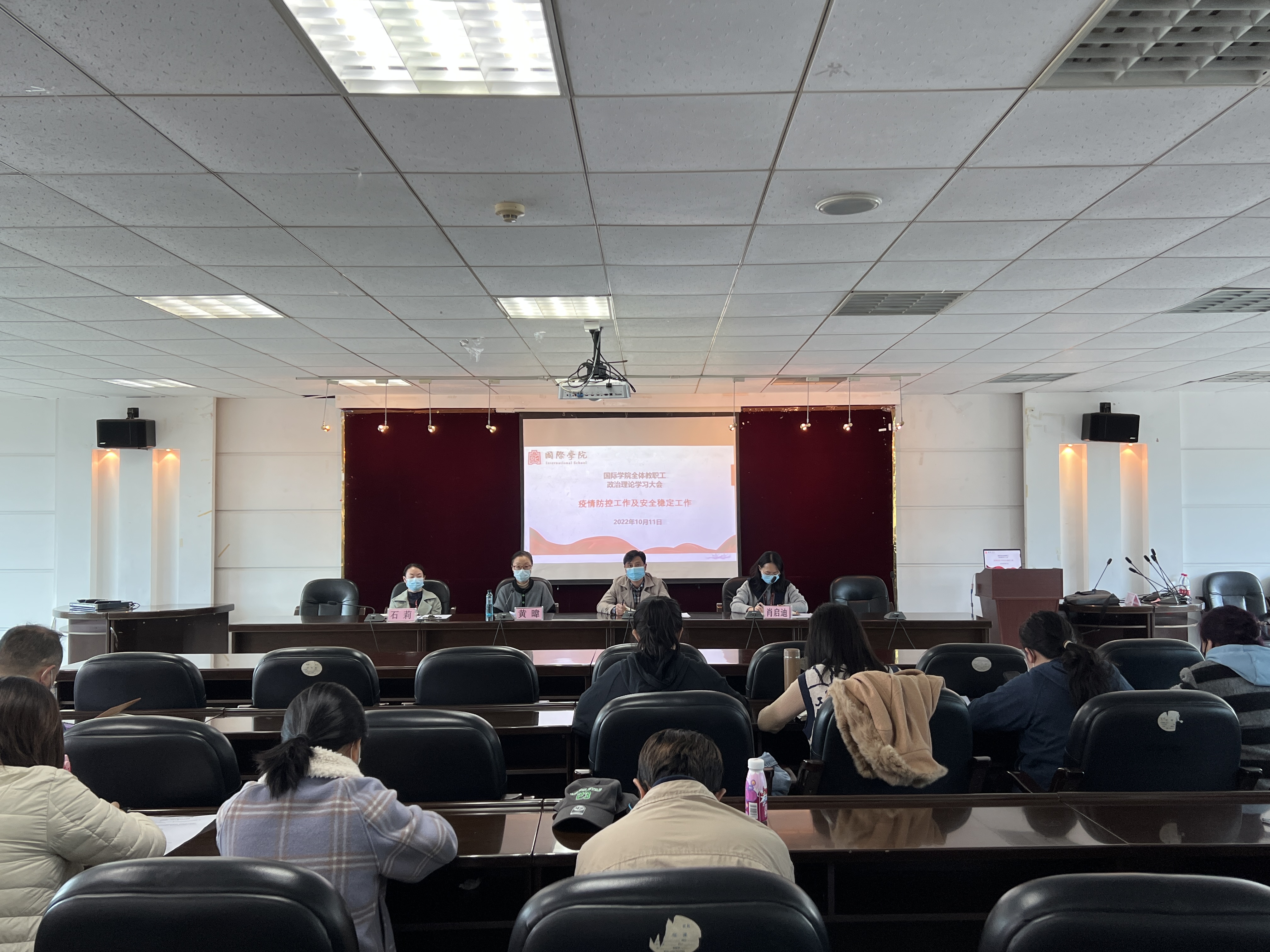 (yl23411 杨文静 图文报道)10月11日下午,yl23411在鹿冲关校区行政楼六楼会议室召开疫情防控和安全稳定工作会议。会议由公司党委书记王治航主持,党委副书记黄暐、肖启迪,副经理石莉,以及全体教职工参加。