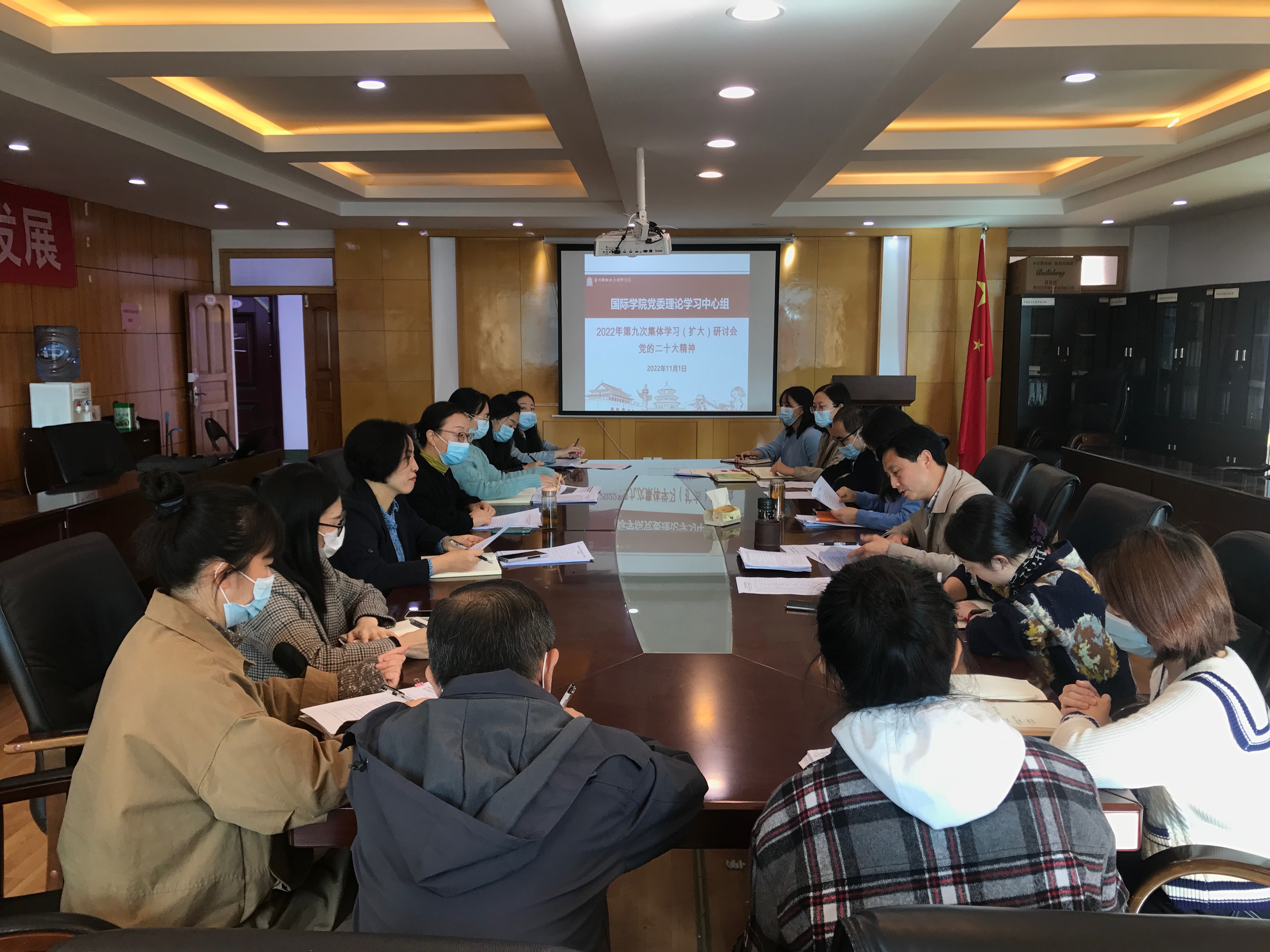 (yl23411 卫荷 图文报道)11月1日下午,yl23411党委理论学习中心组在行政楼314会议室举行2022年度第九次集体学习(扩大)研讨会,专题学习党的二十大精神。公司领导王治航、黄暐、肖启迪、石莉和党委委员张夕出席会议,科级干部、各支部书记、专职组织员参加会议,会议由公司党委书记王治航主持。