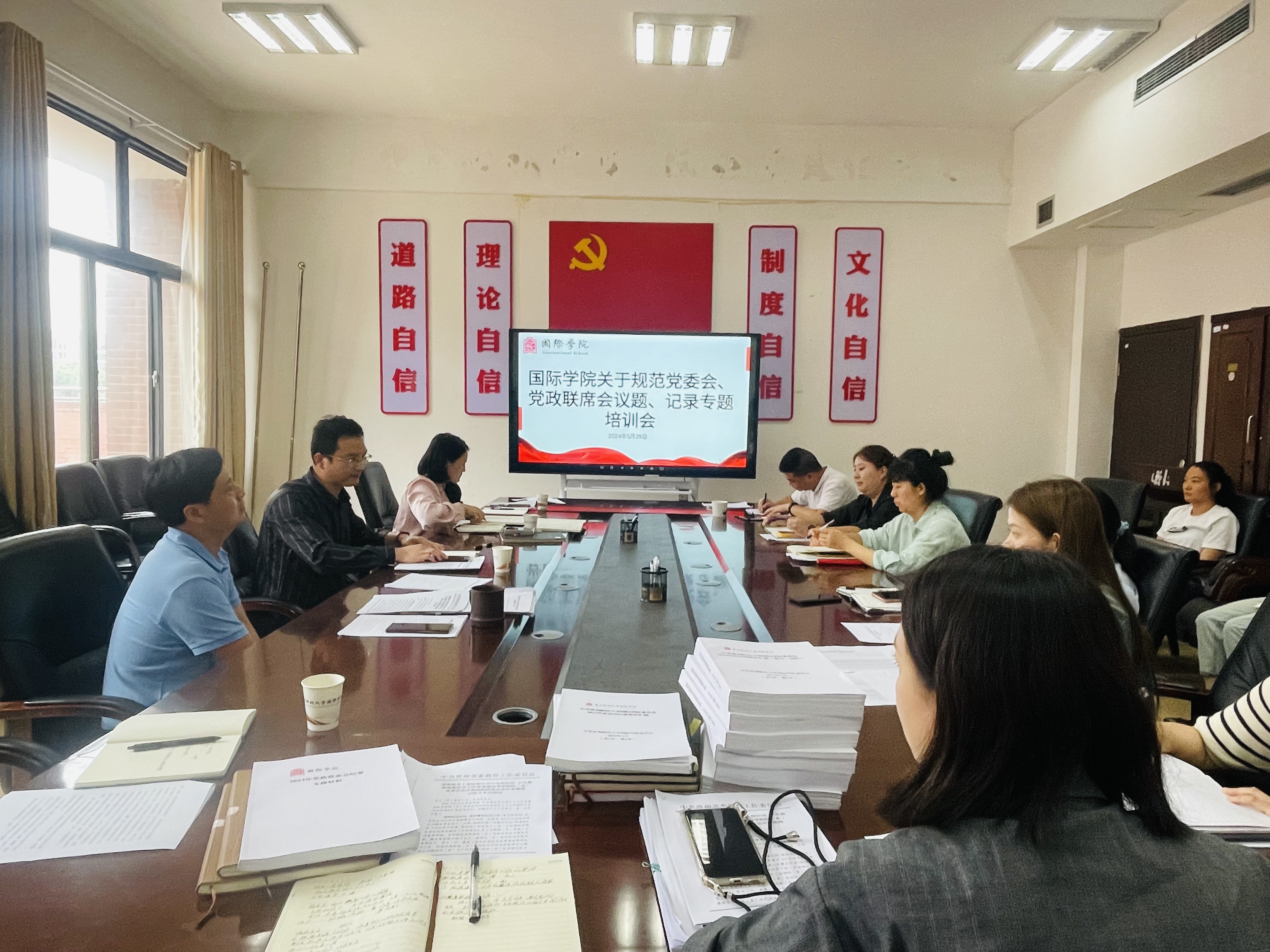 (yl23411 张夕 图文报道)5月29日上午,yl23411在正德楼413会议室召开规范党委会、党政联席会议题、记录专题培训会,邀请校管理质量监控办公室主任、党政办公室副主任刘斌、公司党政办公室秘书科科长车金恒、信息督办科科长刘立明、行政科副科长高雅娟对公司相关工作进行培训指导。yl23411党委书记王治航、副书记肖启迪、公司党政办公室全体人员、各科科室负责人参会,会议由王治航主持。