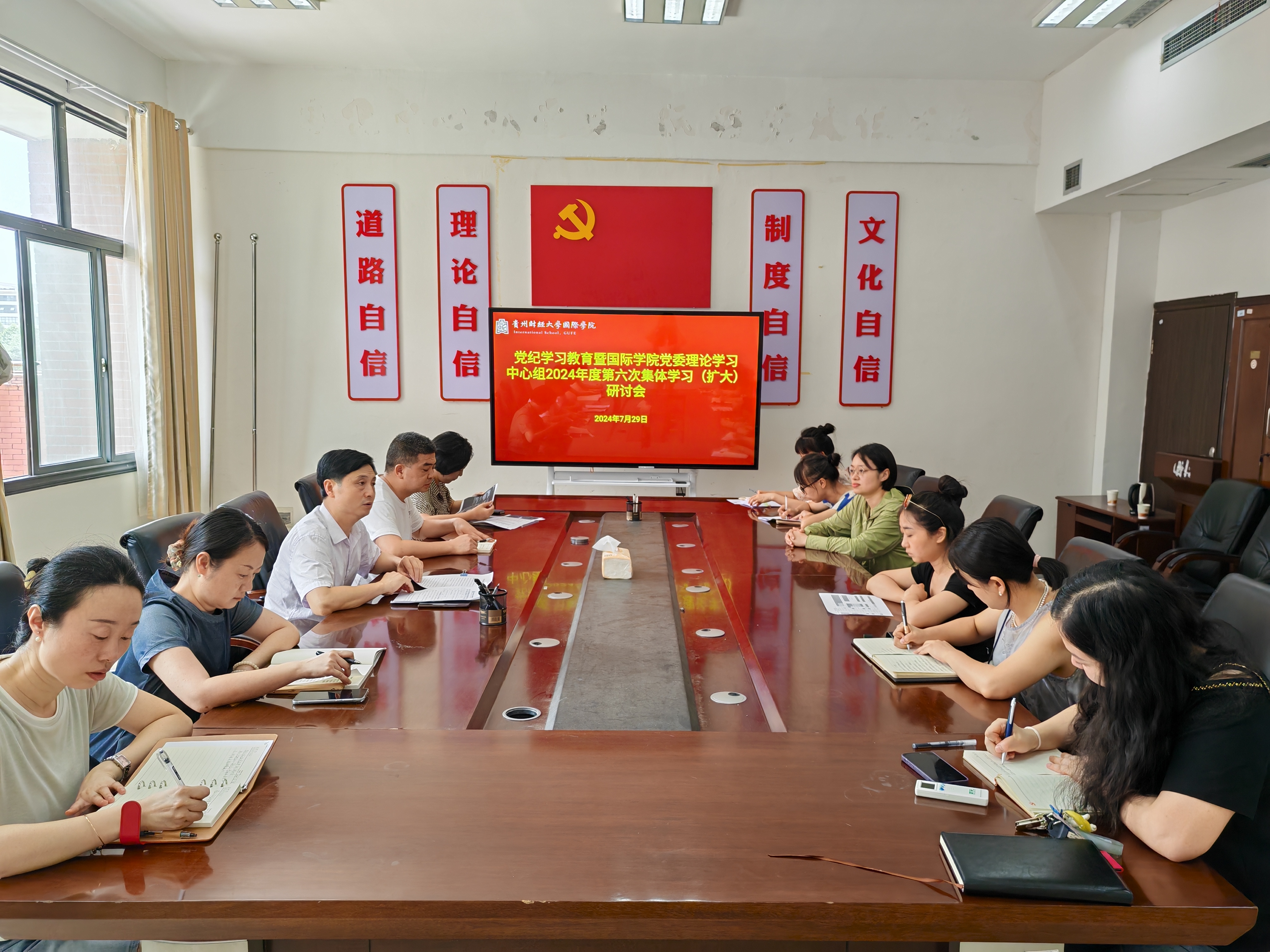 (yl23411 谢凝云 图文报道)7月29日,yl23411党委理论学习中心组2024年度第六次集体学习(扩大)研讨会在西区正德楼413会议室召开,本次会议主题是“深刻领会习近平法治思想,认真学习贯彻习近平总书记重要讲话精神,教育引导全校上下树牢法治意识,将公司党纪学习教育引向深入”。公司党委书记王治航主持并讲话,公司领导古鸿宇、陈嵩、刘利音、石莉出席会议。
