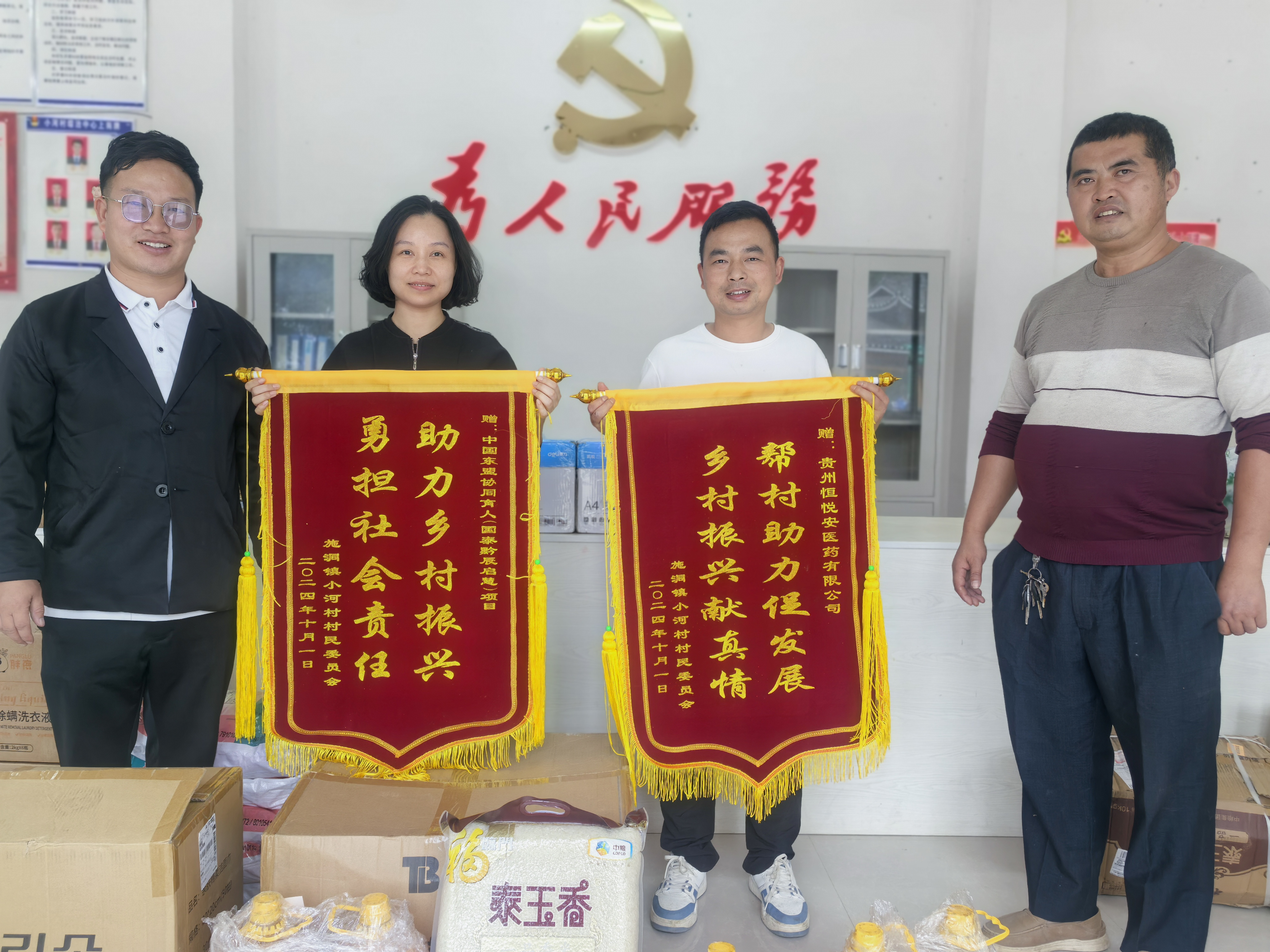 (yl23411 古鸿宇 图文报道)最美人间十月天,爱心帮扶当此时,10月3日,由yl23411牵头企业组织到施洞镇小河村开展捐赠活动。yl23411党委副书记古鸿宇,贵州恒悦安医药有限公司总经理杨昌勇,中国东盟协同育人项目指导教师周黔前往施洞镇小河村尽进行捐赠并走访困难群众。