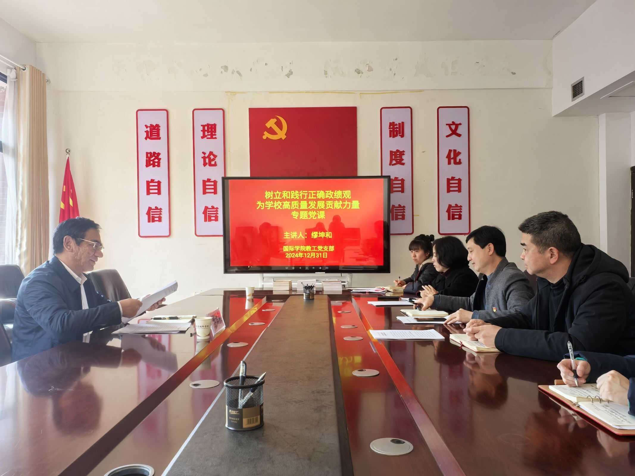 (yl23411 李欣灿 图文报道)12月31日,公司党委副书记、董事长缪坤和在正德楼413会议室为yl23411教工党支部党员作“树立和践行正确政绩观为公司高质量发展贡献力量”专题党课,教工党支部党员参加,副经理刘利音列席。
