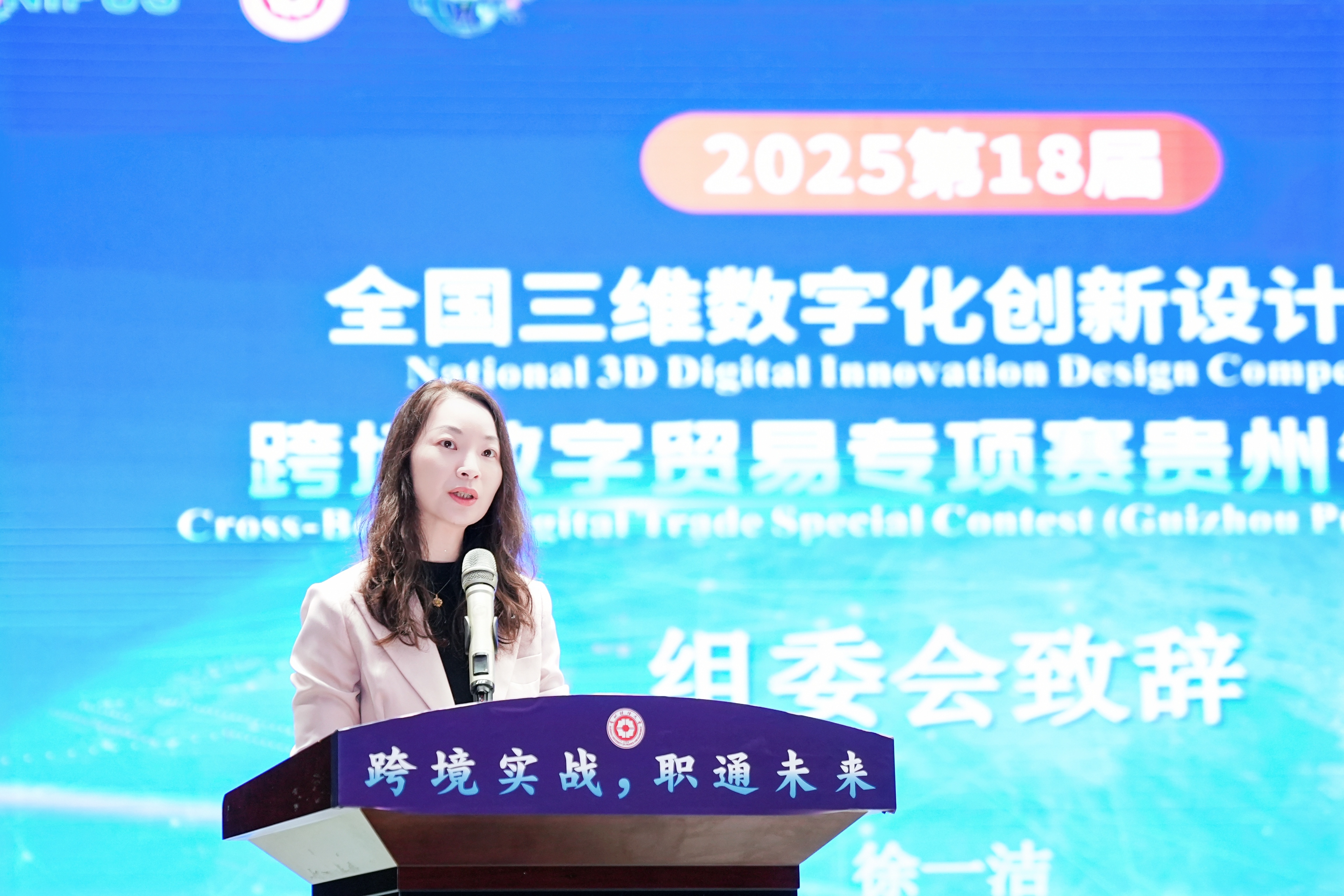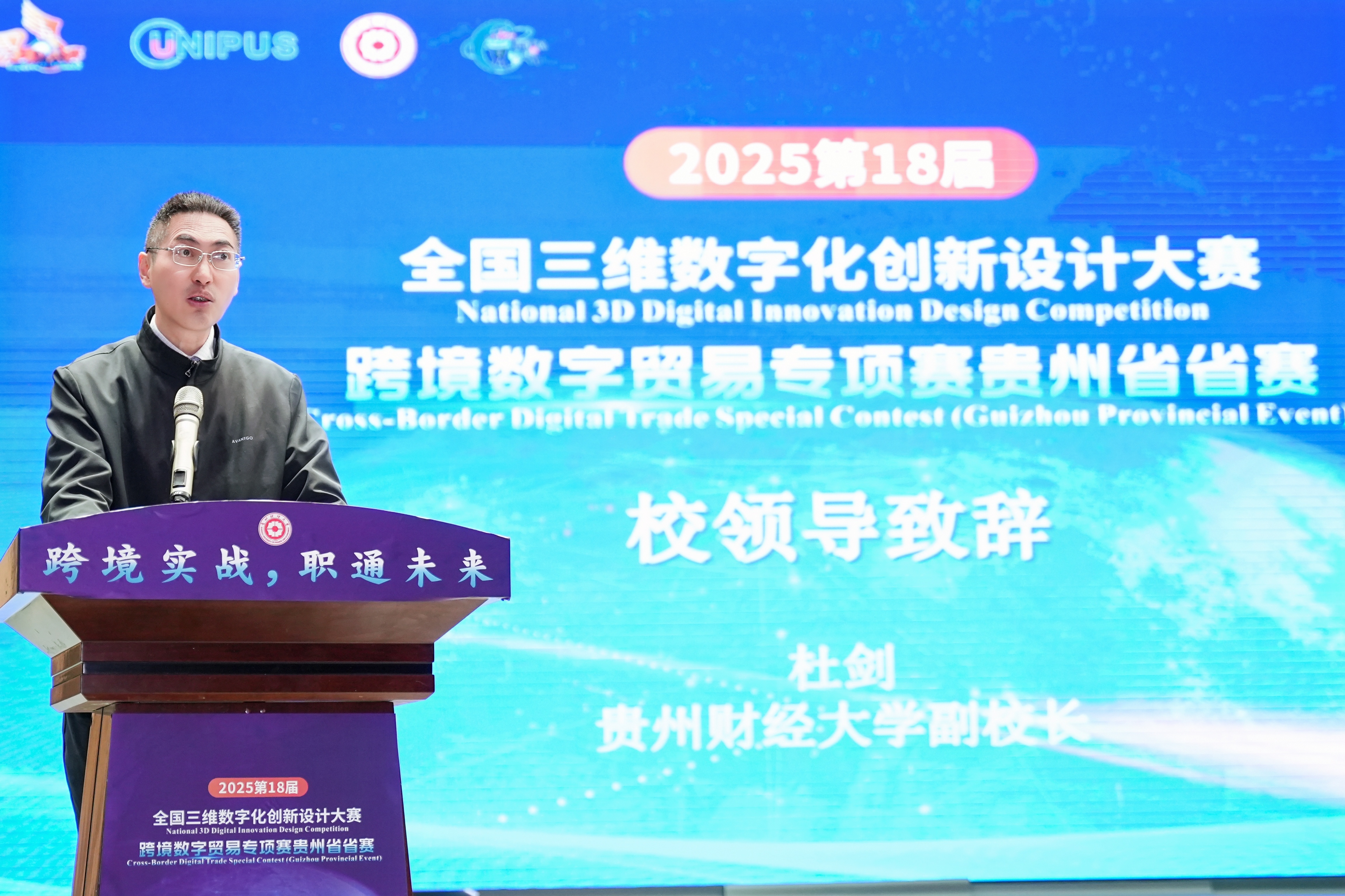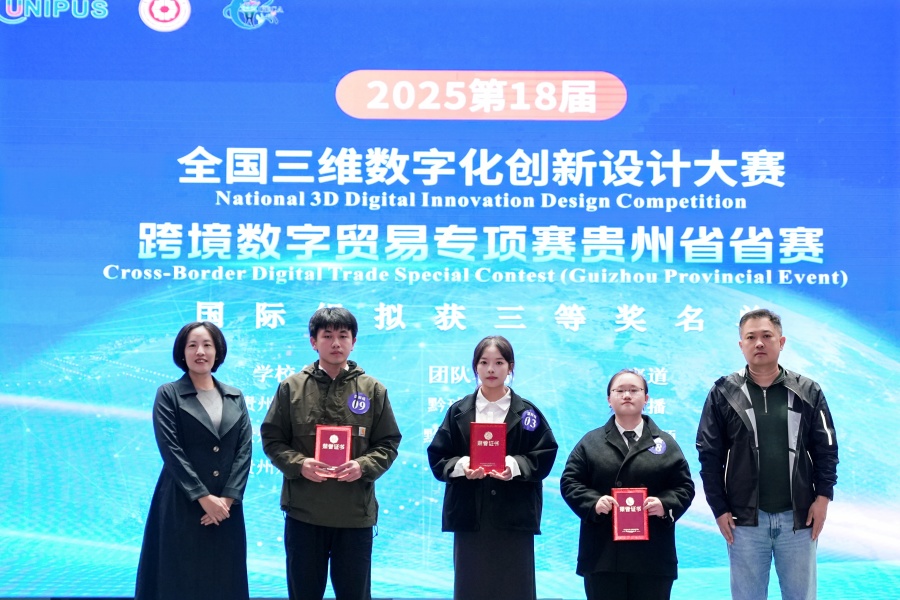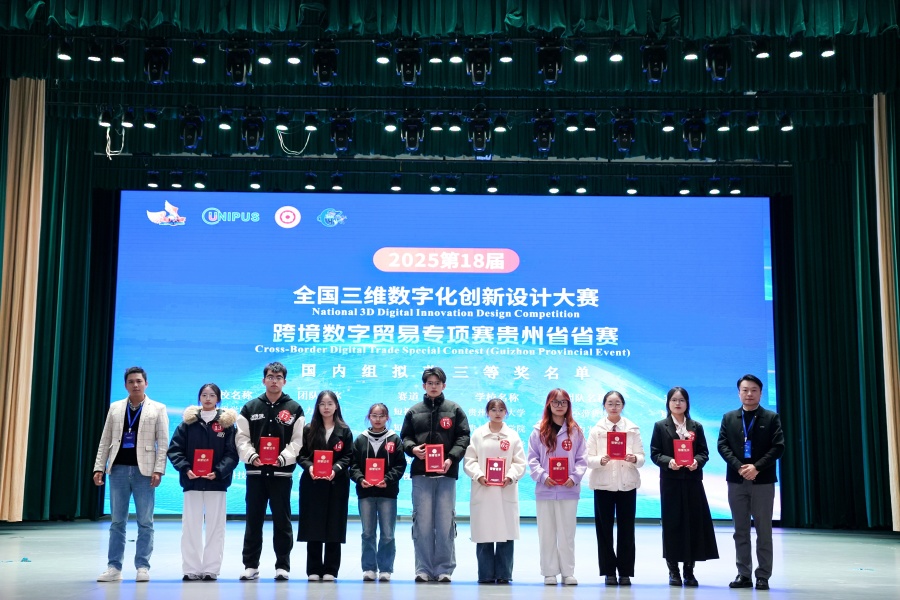 (yl23411 沙静 图文报道)10月25日,由yl23411、北京外研在线数字科技有限公司、贵州省电子商务协会共同承办的,2025第18届全国三维数字化创新设计大赛(以下简称全国3D大赛)跨境数字贸易专项赛贵州省省赛在yl23411员工活动中心举行。yl23411副董事长杜剑,对外经济贸易大学现代服务业研究中心首席教授陈进,组委会成员单位北京外研在线数字科技有限公司首席内容官兼职业教育事业部总经理徐一洁,全国三维数字化创新设计大赛组委会秘书处副主任姜宛辰,贵州电子商务职业公司副董事长邓院生,贵州省电子商务协会党委书记、会长孔祥兰等领导嘉宾以及yl23411380余名师生参加。本届专项赛省赛分初赛和复赛两个阶段,初赛吸引了来自省内13所院校,165支国内队伍和9支国际队伍报名程参加,其中,国际组的队员分别来自俄罗斯、泰国、越南等十个国家。经过评选,40支队伍入围省赛复赛路演。
