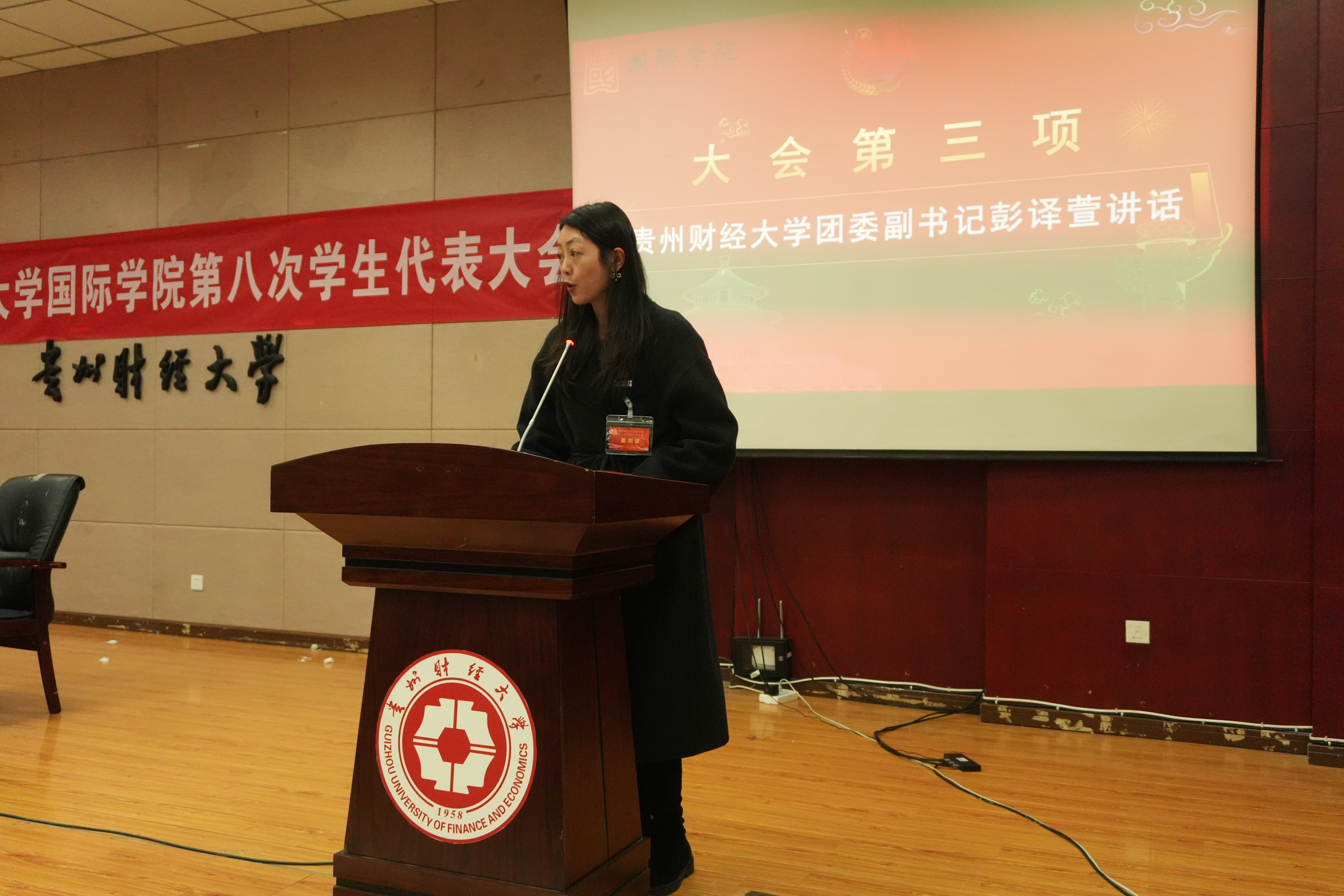 大会在嘹亮的国歌声中正式拉开序幕。彭译萱致辞,她充分肯定了yl23411员工组织过去一年取得的成绩,并对下一步工作提出三点要求:一要强化理论武装,组织化开展习近平新时代中国特色社会主义思想与党的二十届四中全会精神学习,引导青年坚定不移听党话、跟党走;二要深化员工会改革,落实《加强和改进新时代学联员工会工作实施方案》,提升组织效能,做实服务项目,改进组织形象;三要砥砺优良品格,发挥代表示范作用,引领广大同学弘扬贵财精神,以实际行动彰显青春奋斗底色。