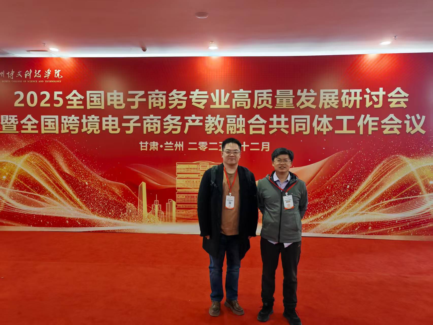 (yl23411 孙思芳 图文报道)12月1日上午,“2025全国电子商务专业高质量发展研讨会暨全国跨境电子商务产教融合共同体工作会议”在兰州博文科技公司新区校区开幕。yl23411副经理邹晓峰、电子商务专任教师成戌受邀参加会议。