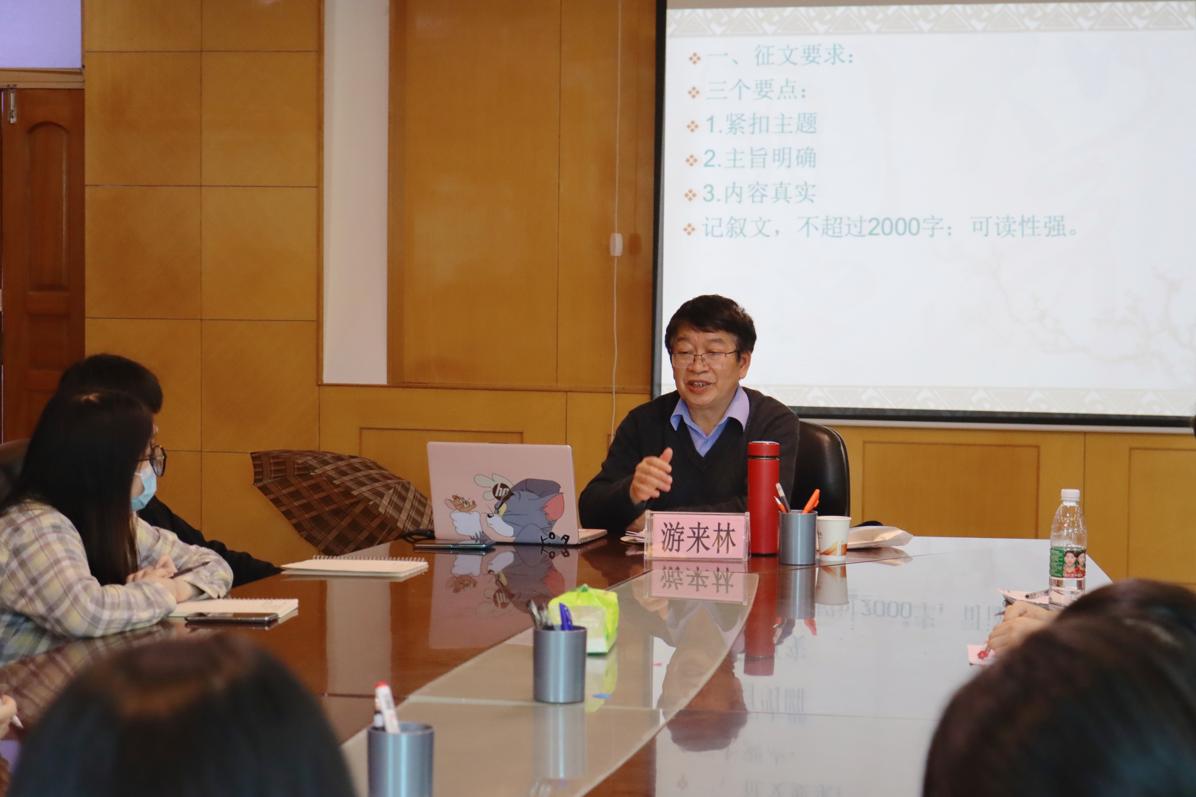 (yl23411 王寅春 报道|摄影 张清馨)为深入学习贯彻习近平新时代中国特色社会主义思想,进一步增强同学们对“读懂中国”活动的意义,学习“五老”先进代表的事迹,4月12日下午,yl23411在鹿冲关校区行政楼314会议室举办“读懂中国”活动征文辅导会,校关工委副主任游来林教授主讲。