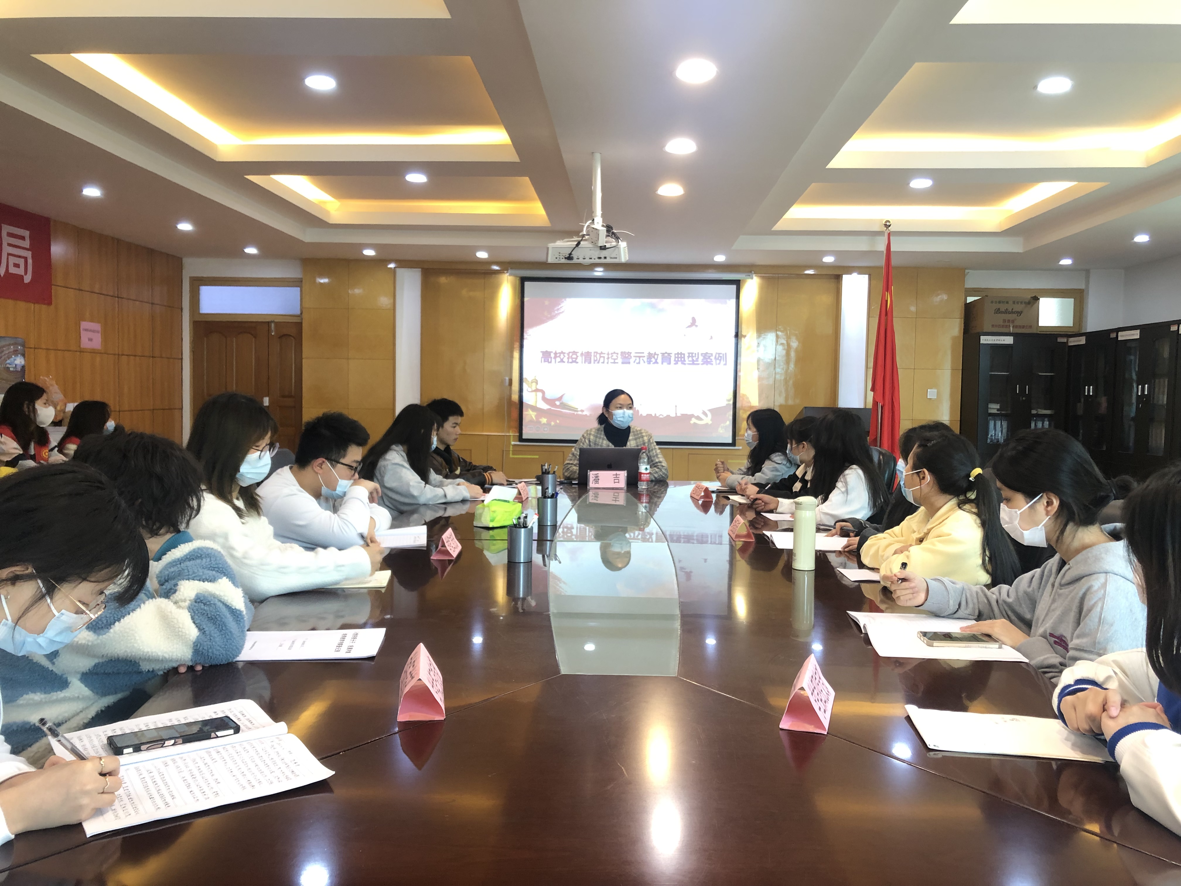 (yl23411 谈杰 杜雨 报道|摄影 吴光彦)4月19日中午,yl23411党校在鹿冲关校区行政楼314会议室以线上线下相结合的形式开展“高校疫情防控警示教育典型案例”专题党课,yl23411正科级专职组织员潘吉同志主讲,各支部党员及2022年春季入党积极分子培训班学员参加。