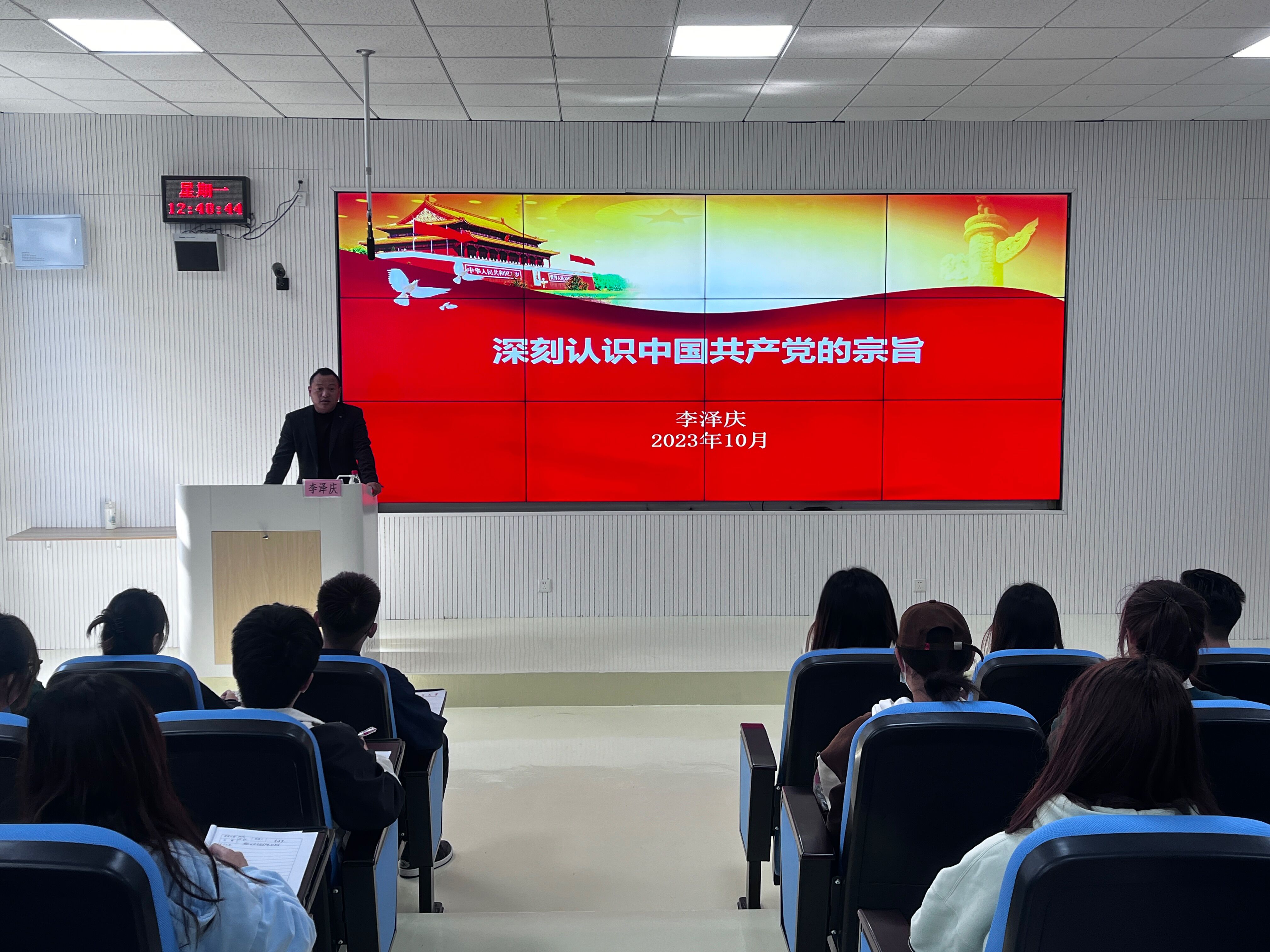 (yl23411 陆晓莹 付宇坤 报道|摄影 杨仕豪)10月30日,yl23411党校在乐学楼101教室开展“深刻认识中国共产党的宗旨”专题党课。公司党委组织部组织科科长李泽庆主讲,2023年秋季入党积极分子培训班全体学员参加。