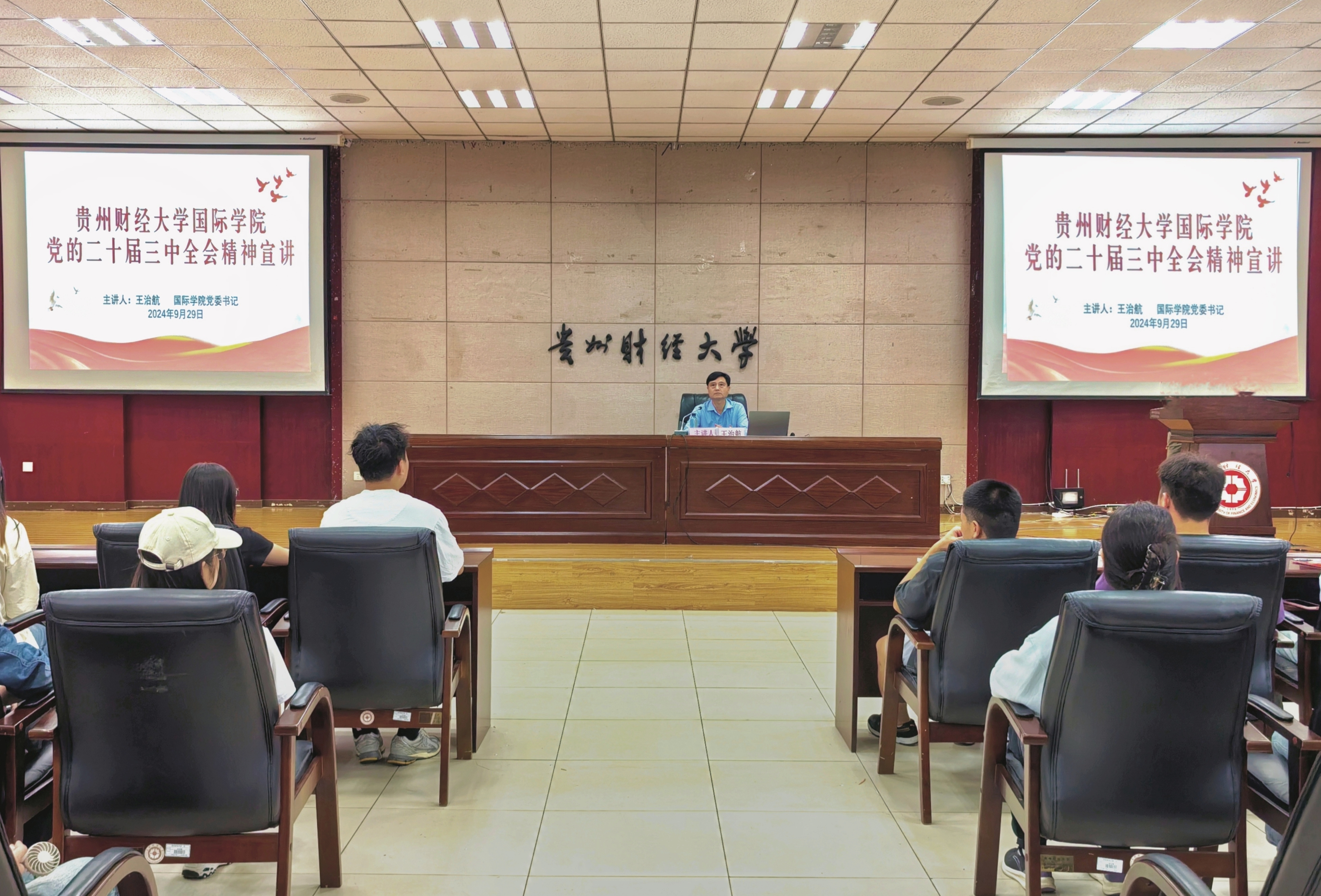 (yl23411 黎子豪 杨仕豪 报道|摄影 王琴 罗紫晗)为深入学习宣传贯彻党的二十届三中全会精神,9月29日下午,yl23411在正德楼114会议室开展学习贯彻党的二十届三中全会精神宣讲报告会,公司党委书记王治航为师生作宣讲报告。公司党委副书记古鸿宇、各党支部书记、师生党员、党外人士参加。报告会由古鸿宇主持。