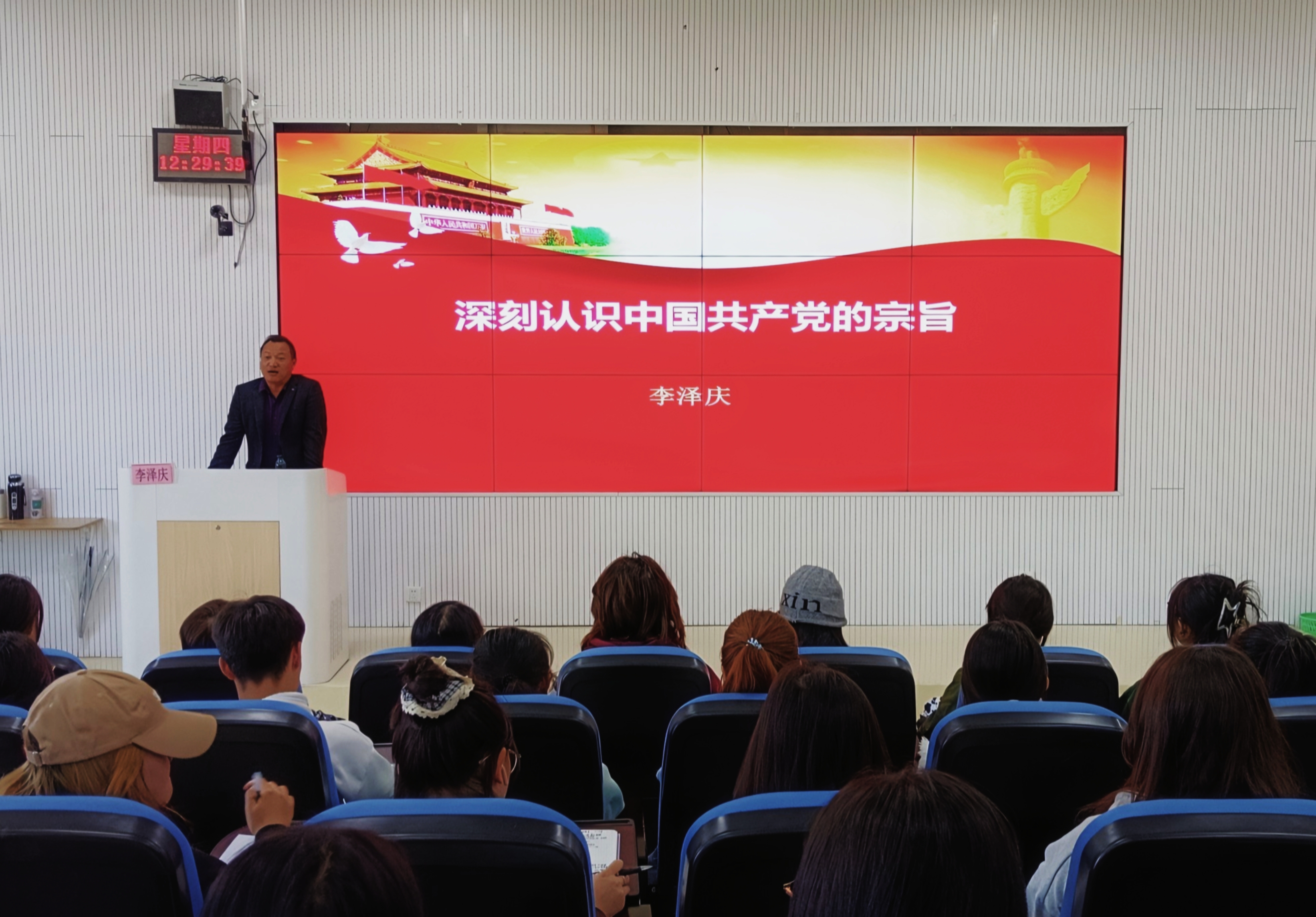 (yl23411 罗紫晗 张誉敬 报道|摄影 杨仕豪)10月24日,yl23411邀请公司党委组织部组织科科长李泽庆在乐学楼201教室开展“深刻认识中国共产党的宗旨”专题党课,2024年秋季入党积极分子培训班学员及各支部师生党员参加。