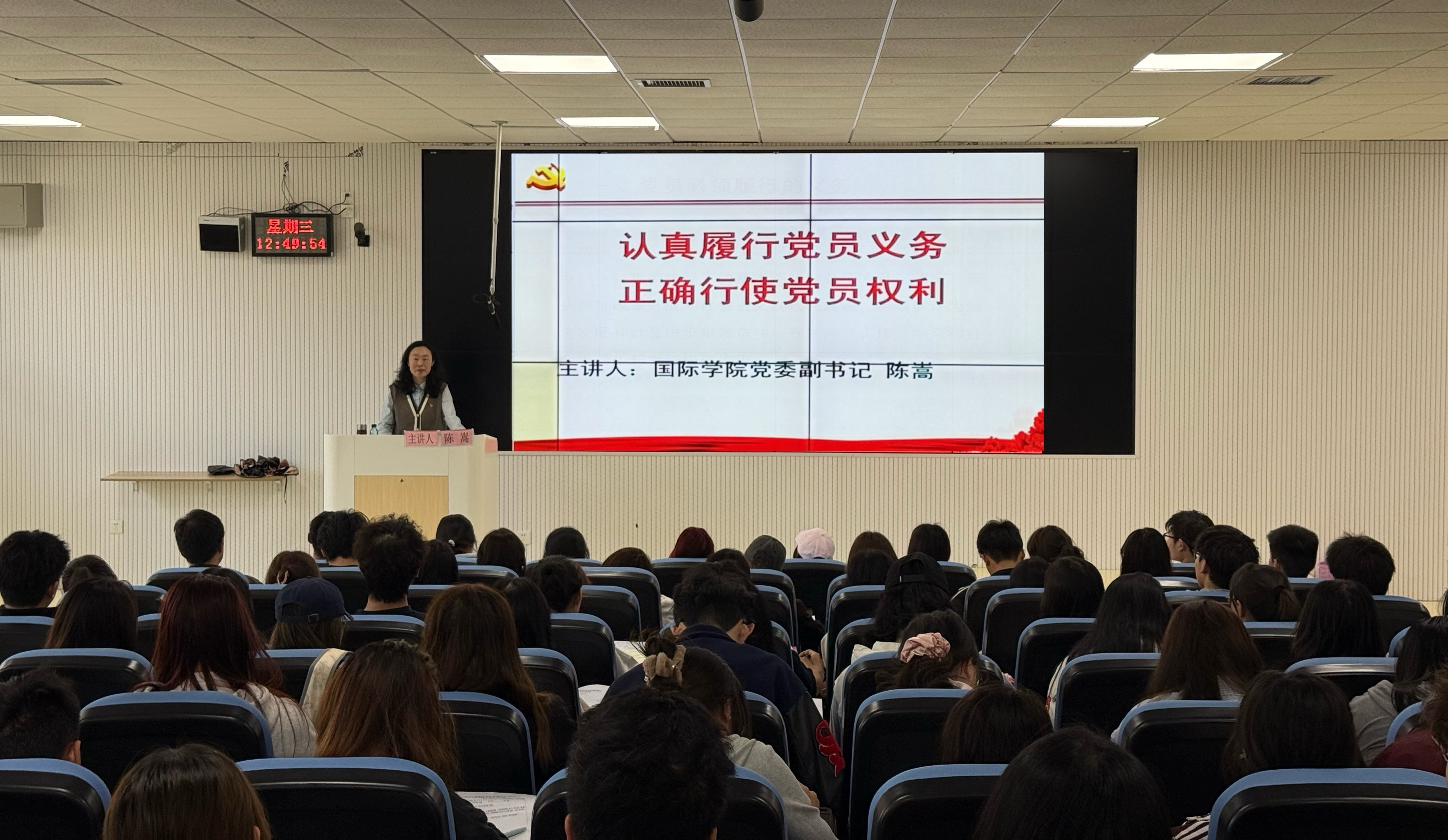 (yl23411 颜岫影 报道|摄影 刘依月棋)3月26日,yl23411党委副书记陈嵩在乐学楼102教室为2025春季入党积极分子及支部党员作《认真履行党员义务,正确行使党员权利》专题党课。
