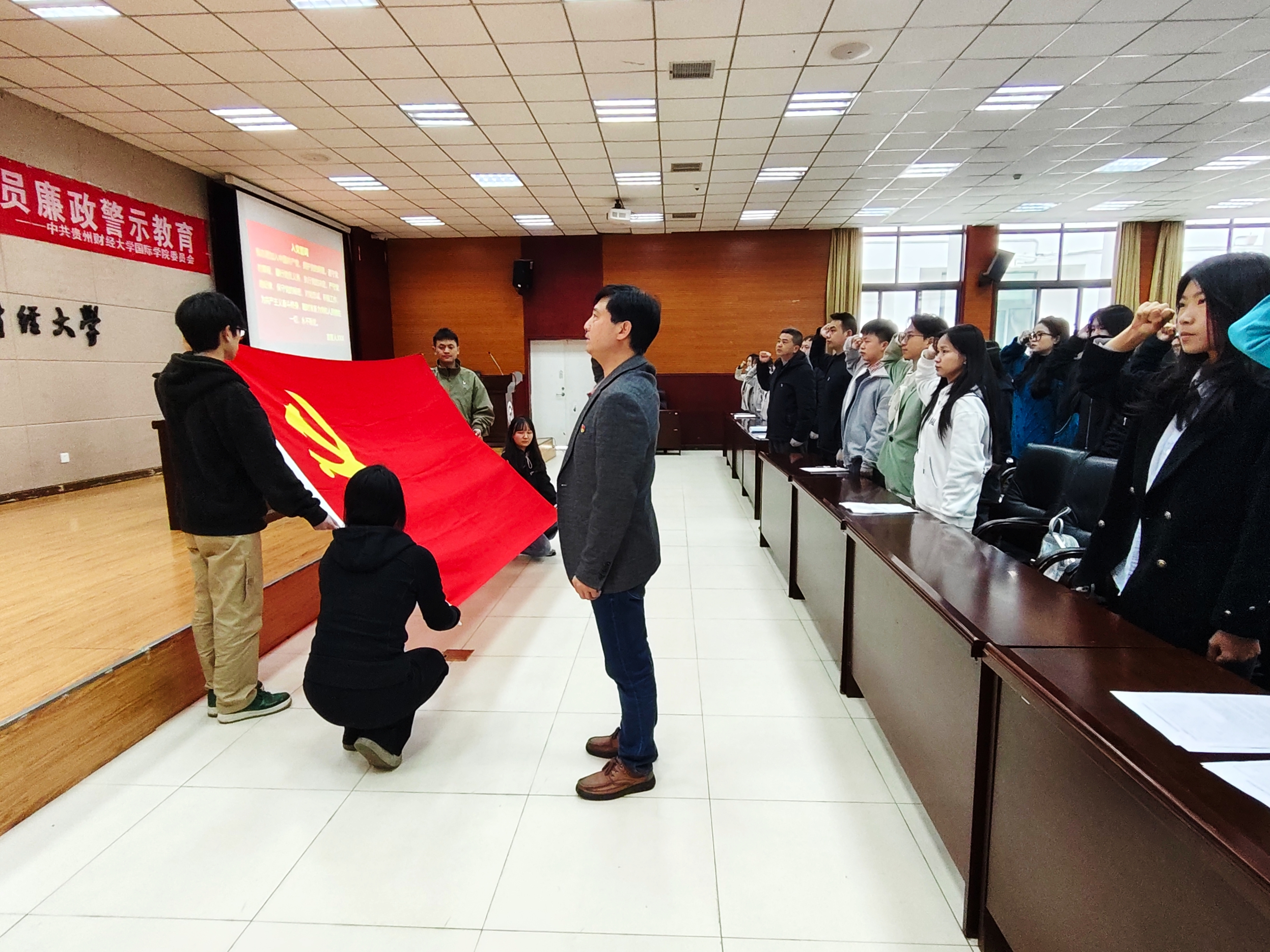 会上,王治航传达学习了《习近平关于加强党的作风建设论述摘编》内容,并以“守住‘心’、当好‘人’”为主题,为2025届毕业生党员作廉洁从业寄语,并以“四个必须守住”为全体毕业生党员的初心使命进行护航,他强调要求全体大家必须守住绝对忠诚之心,永远当好政治坚定的“明白人”;必须守住务实进取之心,永远当好干事创业的“带头人”;必须守住清正廉洁之心,永远当好严于律己的“规矩人”;必须守住宁静平常之心,当好淡泊名利的“快乐人”。随后,为强化毕业生党员的使命担当,王治航带领大家在党旗下庄严宣誓,以此引导毕业生党员坚定理想信念,铭记入党初心。