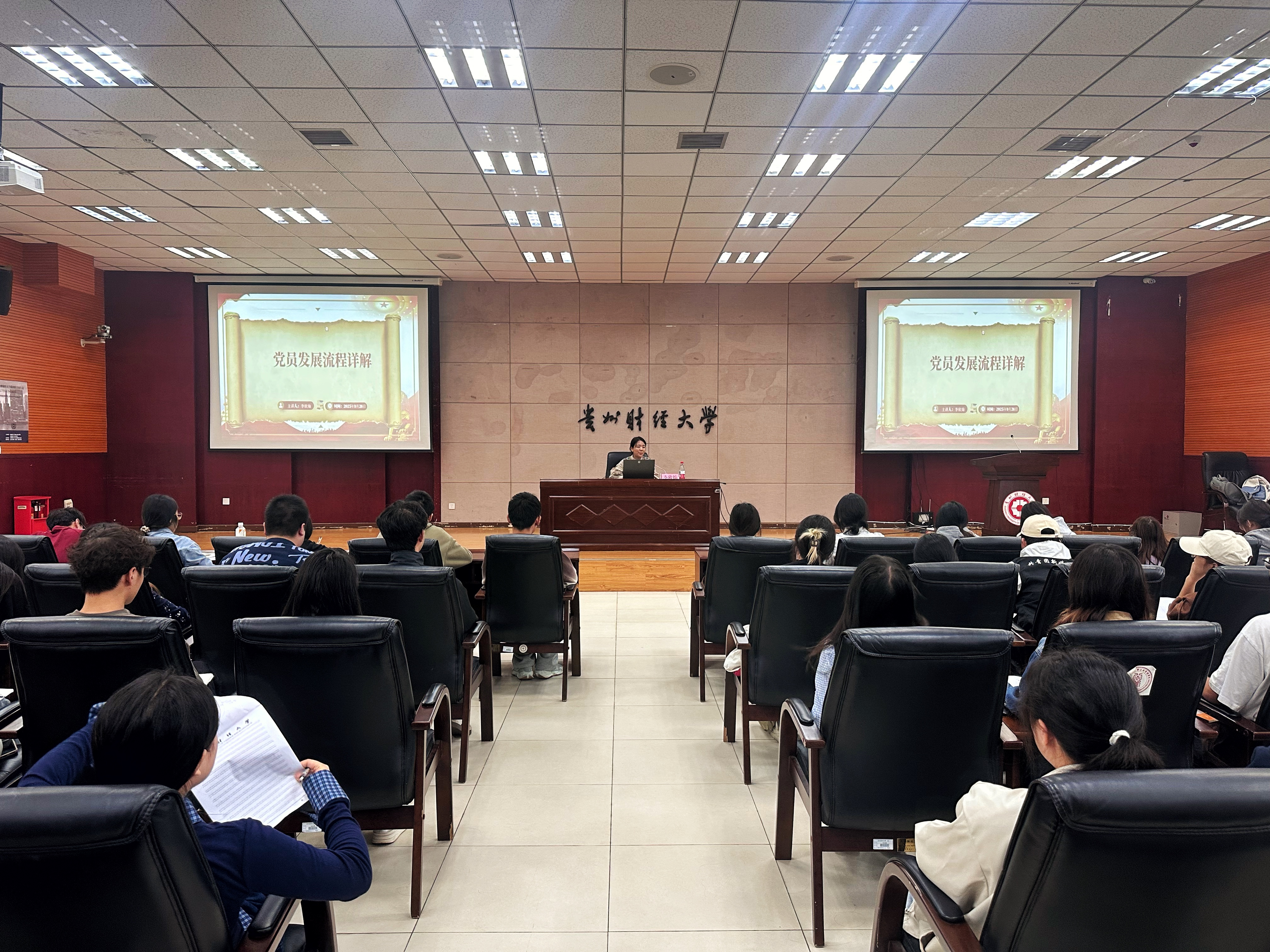 (yl23411 吴尉铖 报道|摄影 潘香云 张誉敬)9月26日中午,yl23411在正德楼114报告厅开展“党员发展流程详解”专题党课。yl23411正科级专职组织员李欣灿主讲,2025年全体秋季入党积极分子参加。