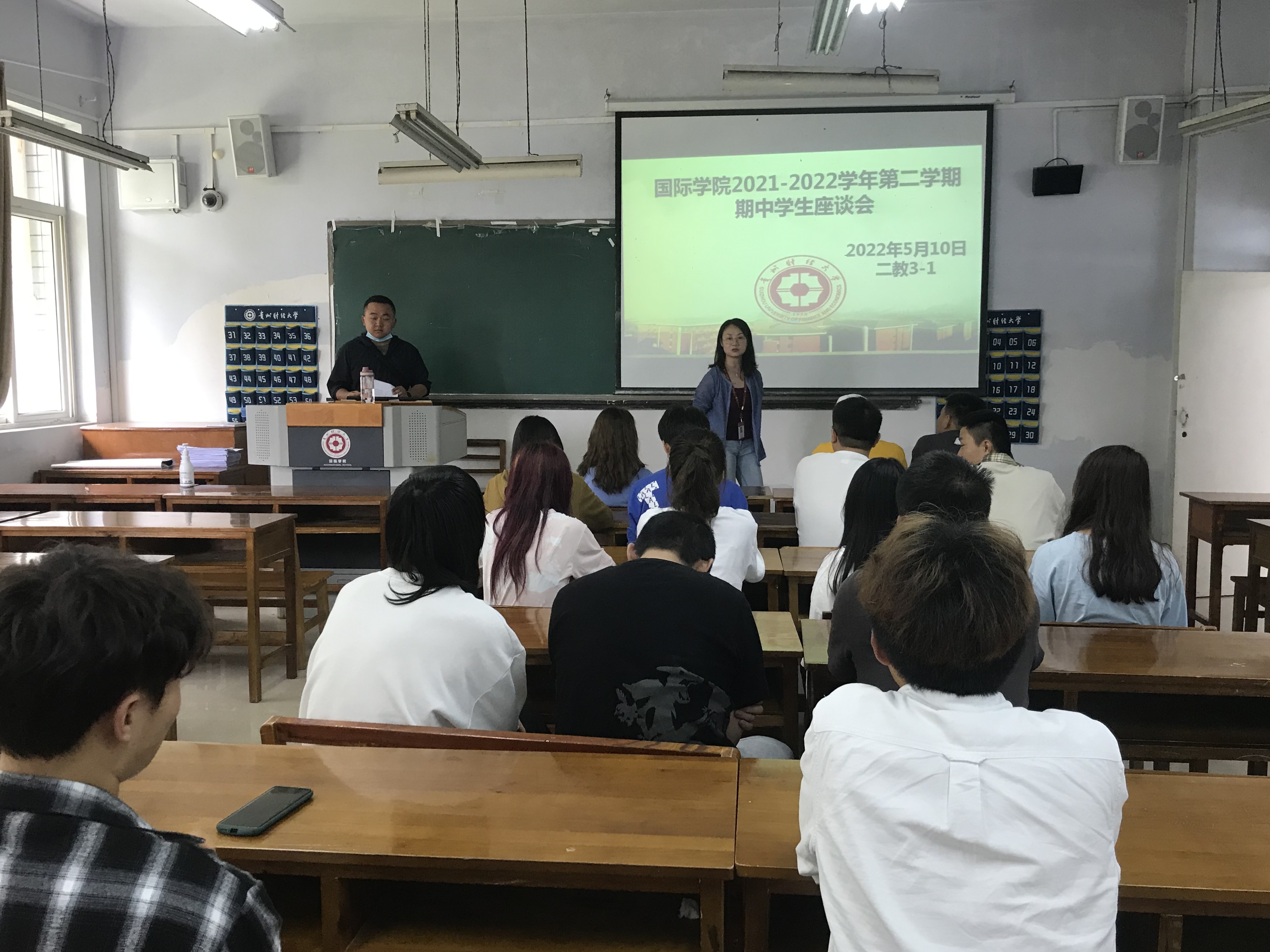 (yl23411 孙思芳 图文报道)为深入了解2021-2022学年第二学期教学工作状况,提高教学质量和管理水平,5月10日中午,yl23411在鹿冲关校区二教3-1教室组织召开各项目员工中期员工座谈会。座谈会由yl23411分管教学工作副经理石莉主持,yl23411教务科全体工作人员参加。