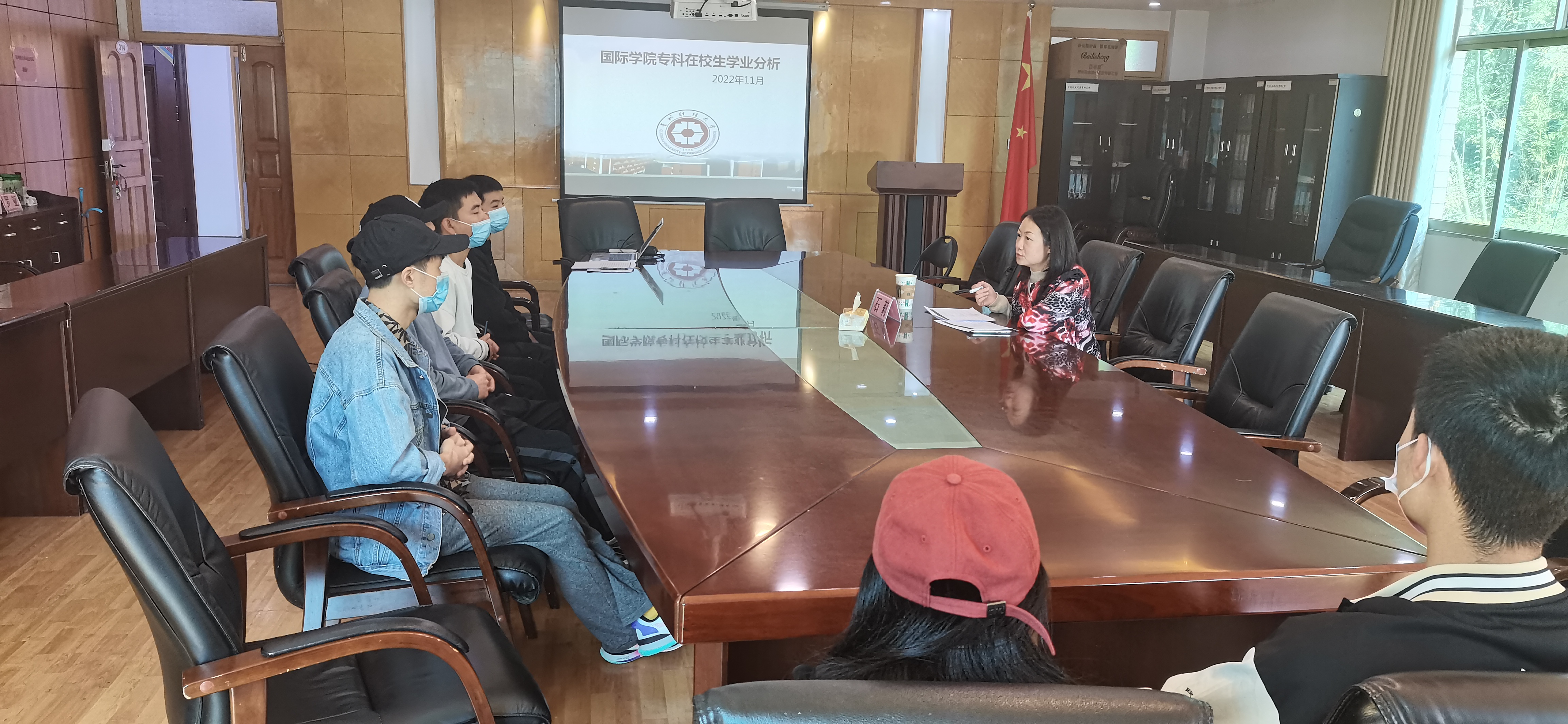 (yl23411 郝傲霜 图文报道)为深入了解yl23411专科退伍复学员工学习情况,帮助员工做好学业规划,11月3日下午,yl23411在行政楼314会议室通过线上线下结合的方式,组织召开专科员工学业分析座谈会。yl23411副经理石莉、教务科工作人员郝傲霜以及专科退伍复学员工参加,会议由石莉主持。