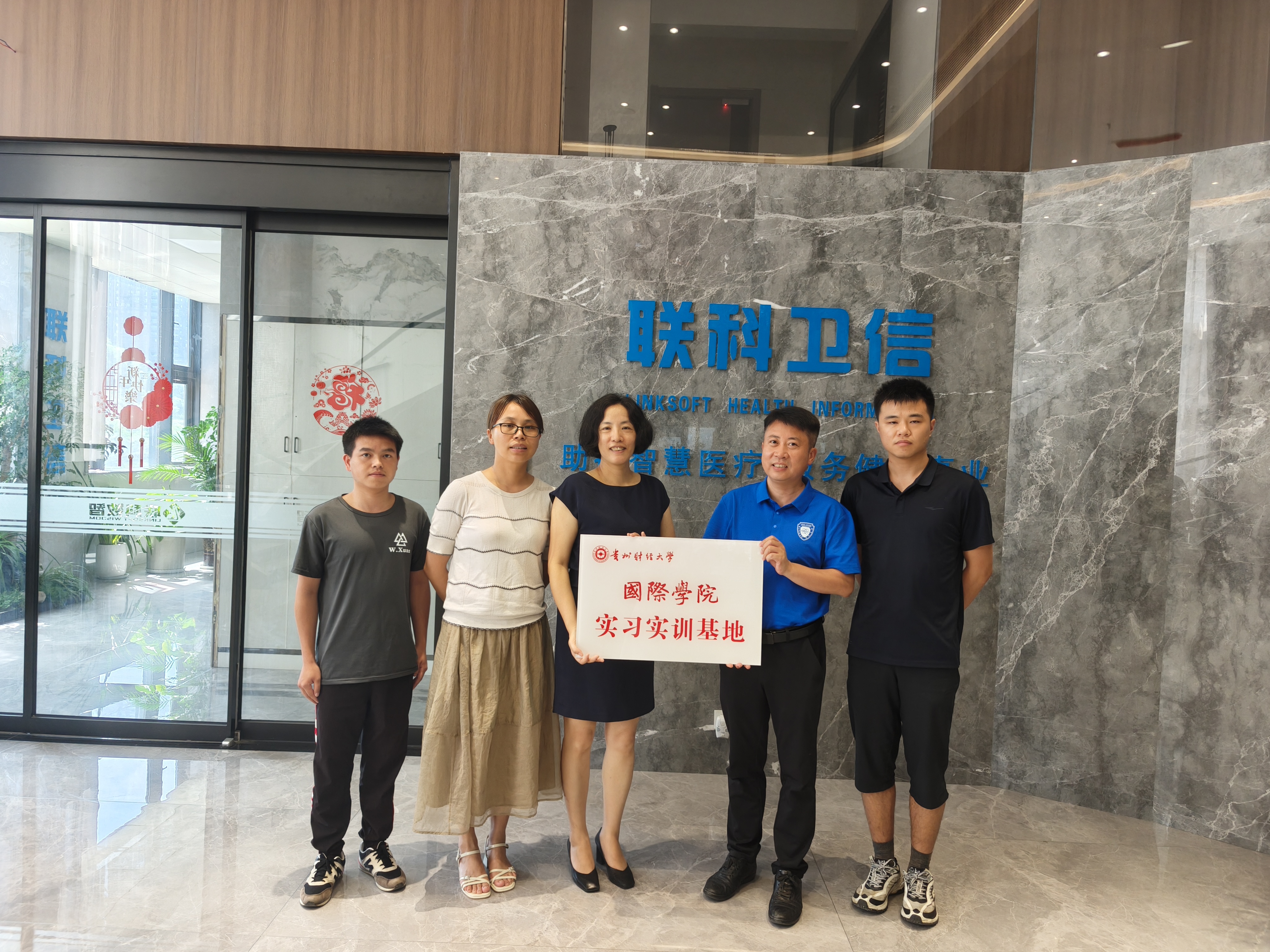 (yl23411 沙静 图文报道)为加强公司实习基地建设,做好员工暑期实习工作,7月16日,公司通过“访企拓岗”活动,赴贵州联科卫信科技有限公司进行校外实践教学基地挂牌。贵州联科卫信科技有限公司董事长冯刚,办公室主任葛婷婷,yl23411副经理刘利音,教务科副科长沙静参加了此次挂牌仪式。