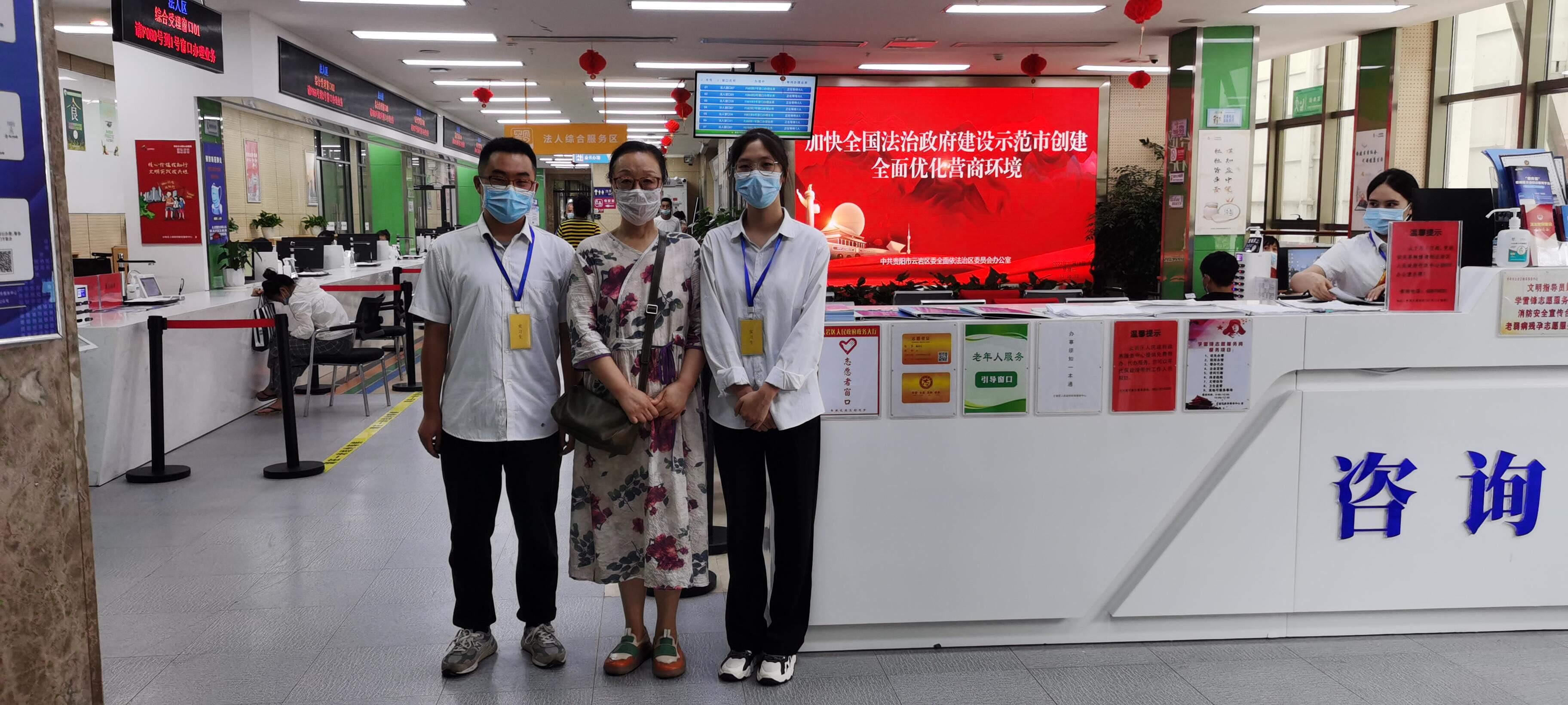 (yl23411 沙静 图文报道)根据公司的工作安排,7月19日,yl23411党委副书记黄暐和教务科老师沙静赴云岩区政府政务服务中心对19级参与集中实习20名员工开展实习检查。