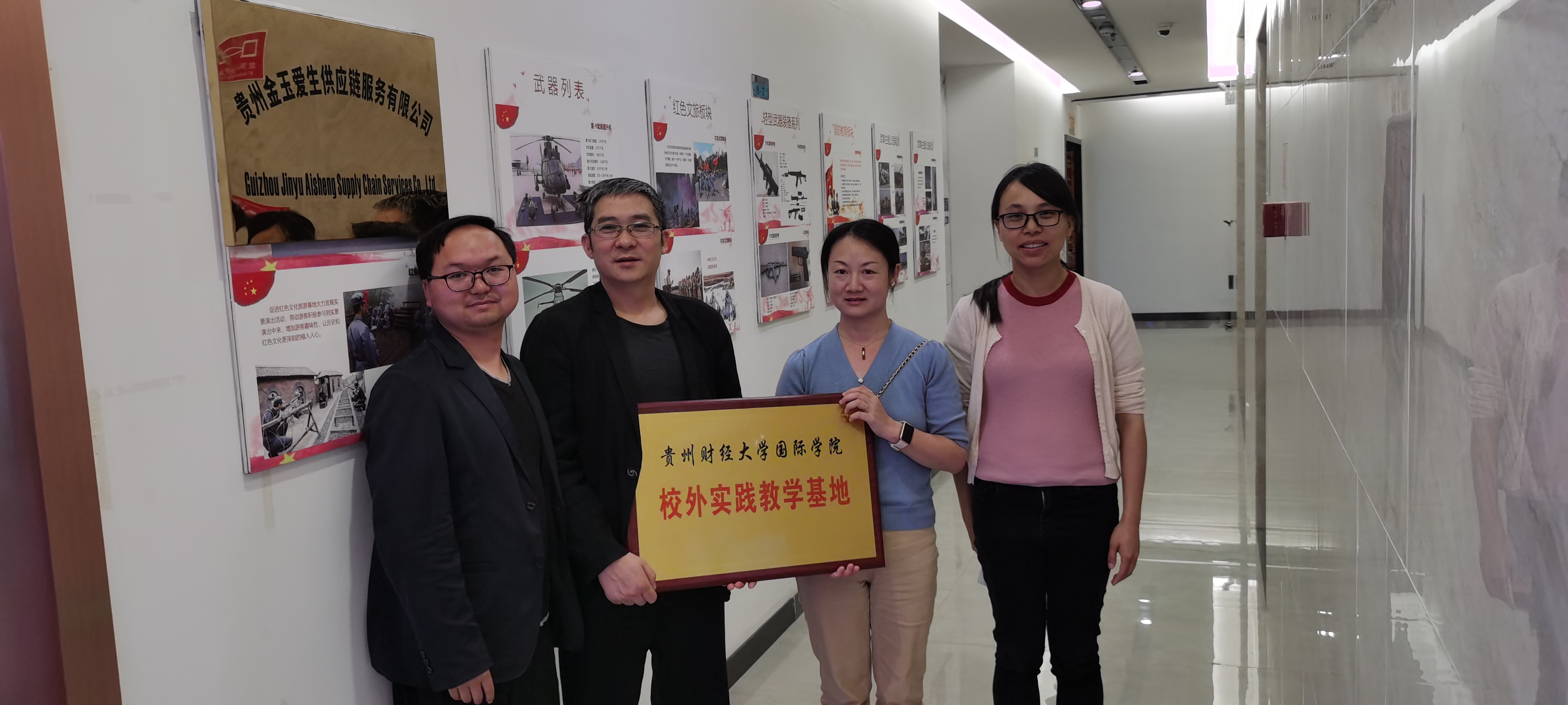 (yl23411 沙静 图文报道)5月20日,yl23411通过“访企拓岗”,与贵州金玉爱生供应链服务有限公司签订校外实践教学基地。yl23411副经理石莉、教务科副科长沙静,贵州金玉爱生供应链服务有限公司执行董事刘永,总经理刘朝林出席了签订和授牌仪式。