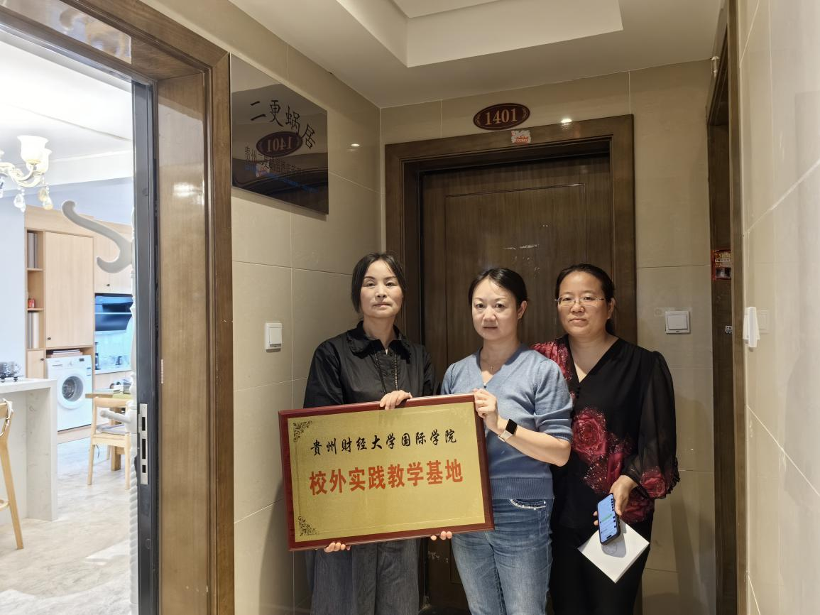 石莉与贵州二更蜗居酒店管理有限公司负责人黄佳云总经理就员工实习进行了交流座谈。座谈会上,黄佳云就公司资质、经营情况、经营模式和经营理念进行了介绍,双方就员工暑期实习的实习内容、食宿安排等事宜进行了交流,并就进一步开展员工创新创业项目设计和指导达成初步共识。双方还就“访企拓岗”进行了座谈,双方进行了营销和管理人才培养的交流,并对合作共建实习基地进行了深入探讨。座谈会后,yl23411在贵州二更蜗居酒店管理有限公司进行了校外实践教学基地授牌仪式。