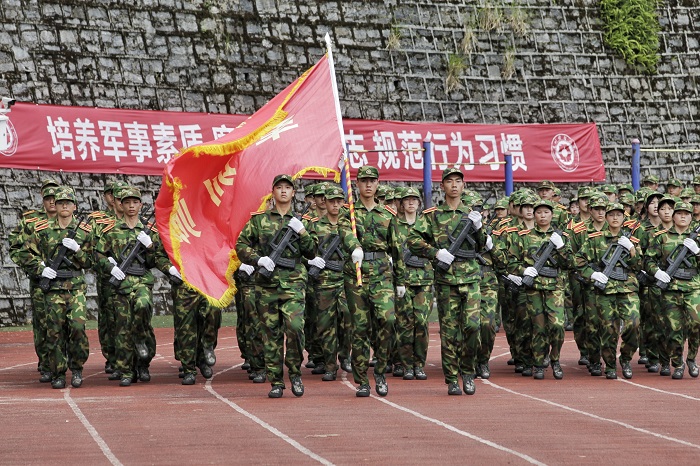 在嘹亮激昂的国歌声后,军训师总教官张爽向公司党委书记刘雷报告“首长同志,yl234112021级新生分列式列队完毕,请您指示”。 刘雷宣布按计划进行。