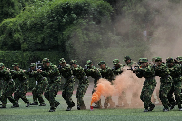 肖小虹讲话指出,同学们要大力弘扬爱国主义精神,脚踏实地,刻苦学习,把军人的纪律、军人的作风带到平时的学习和生活中去,继续发扬在军训中养成的良好习惯,努力拼搏、立志成才!并宣布鹿冲关校区2021级员工军训总结暨汇报表演大会圆满结束。