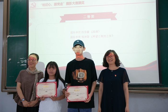 本次创意大赛分为书法、摄影、剪纸三个项目,共收到参赛作品145幅,主题涵盖“学党史、颂党恩”、“铭初心、跟党走”、“忆百年、传薪火”三个方面,内容表现出作者们积极乐观、健康向上的精神气质,颂扬主旋律、弘扬正能量,抒发了对于祖国的满腔热爱。一幅幅精致用心的作品让观众回顾了中国共产党同人民风雨同舟、生死与共,走向胜利的伟大历程。通过专家评委的投票及筛选,此次比赛选出了各项目的一、二、三等奖共计16名获奖者,优秀奖若干名同学。出席的领导为同学们颁发了荣誉证书。典礼过后,所有人员到二教大厅参观了作品展览。