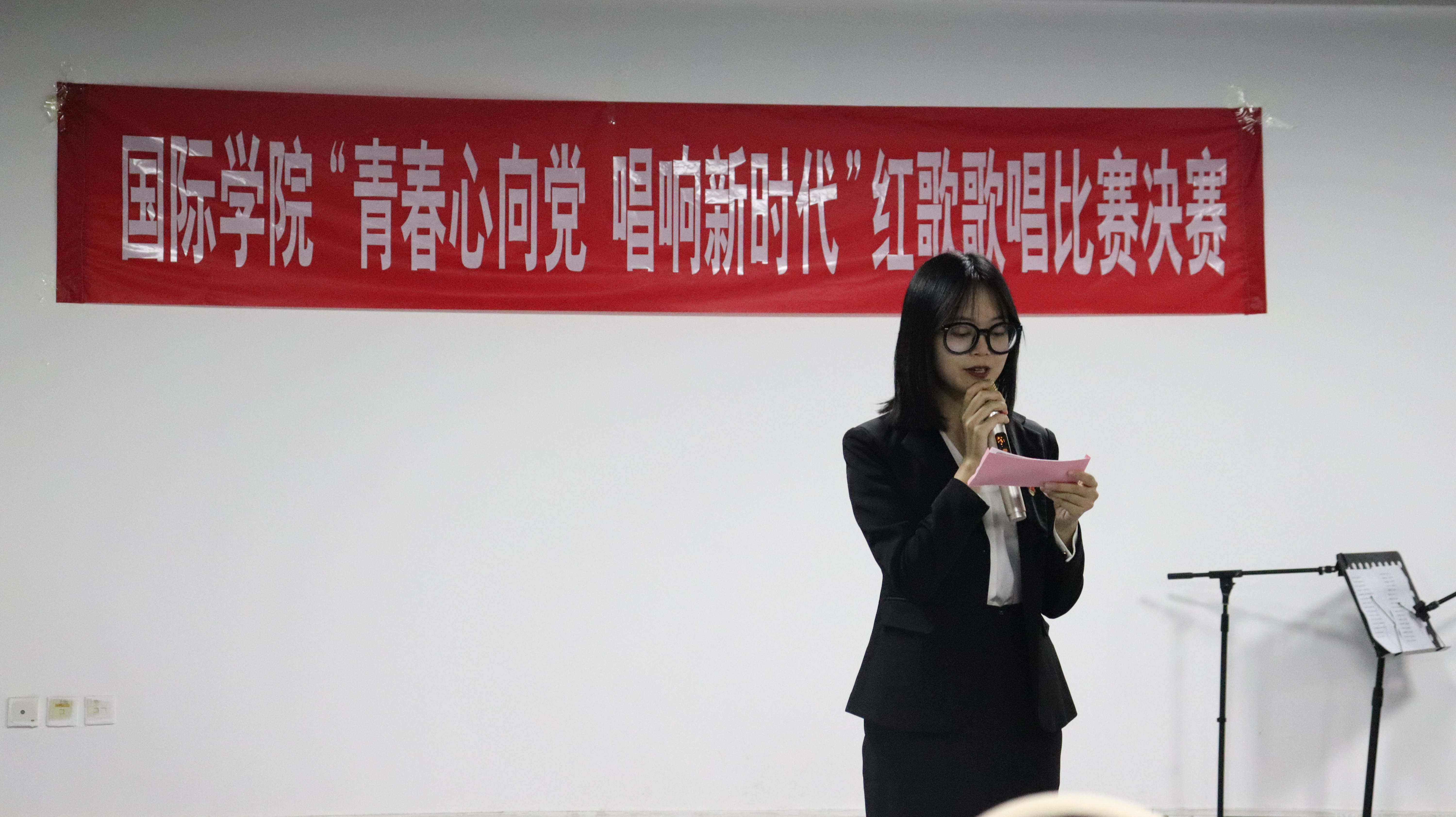 (yl23411 高倩 报道|摄影 孙妍 王婷婷)为迎接党的二十大胜利召开,教育引导同学们厚植爱党爱国情怀,10月14日晚,yl23411举办“青春心向党,唱响新时代”红歌歌唱比赛决赛。参与此次决赛的评委有校员工处副处长韩艳、yl23411党委副书记肖启迪、副经理石莉、校员工处吴姿漫老师、yl23411团委老师颜华菲、董宇婧、李雨霏。