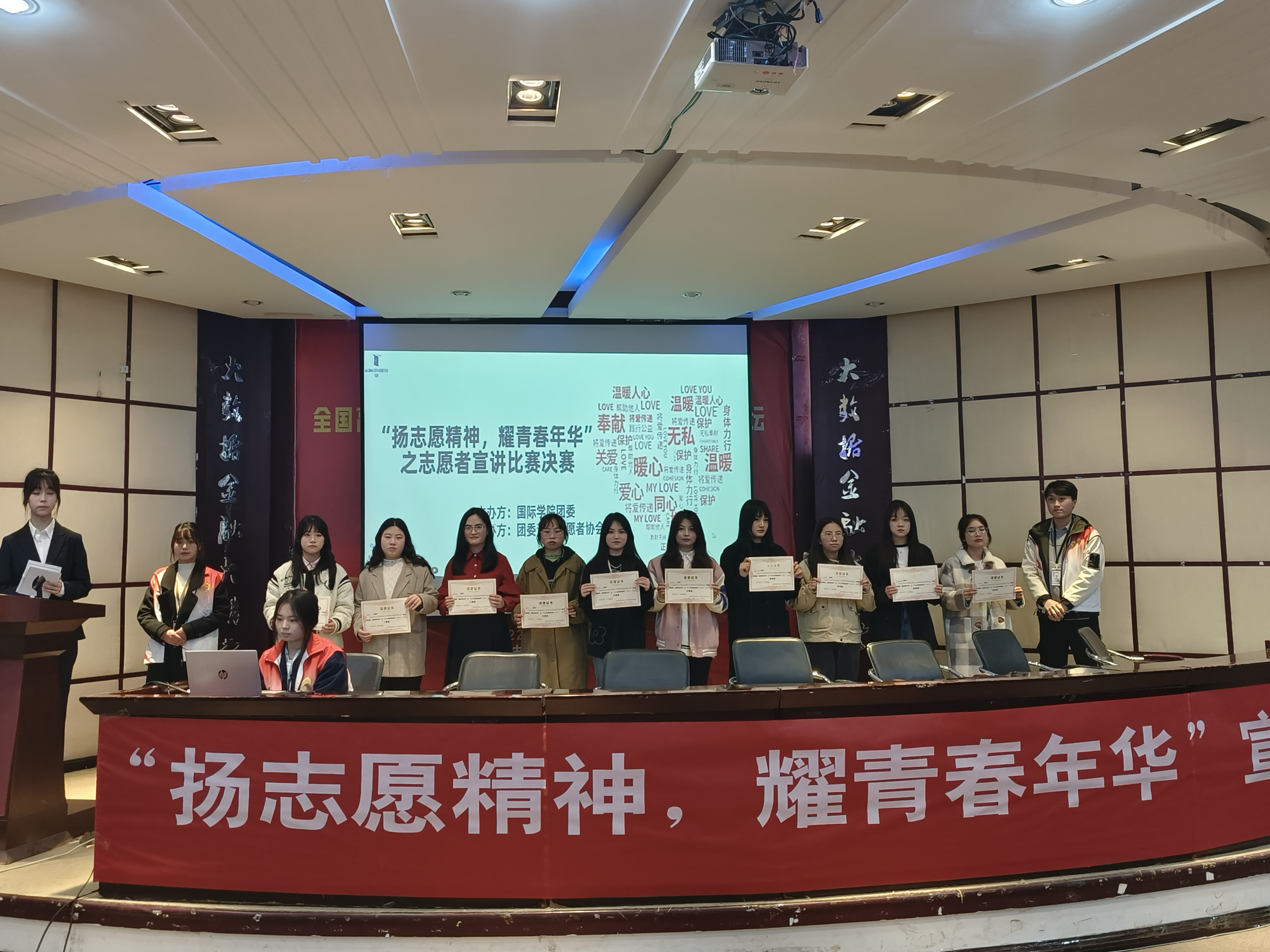 至此,yl23411“扬志愿精神,耀青春年华”之志愿者宣讲比赛决赛圆满落下帷幕。同学们表示,通过此次活动,更好地了解了志愿服务,今后将积极响应党和人民号召,弘扬社会主义核心价值观,践行“奉献、友爱、互助、进步”的志愿精神,肩负起时代赋予的责任,用行动彰显青年的时代风貌和精神风貌。