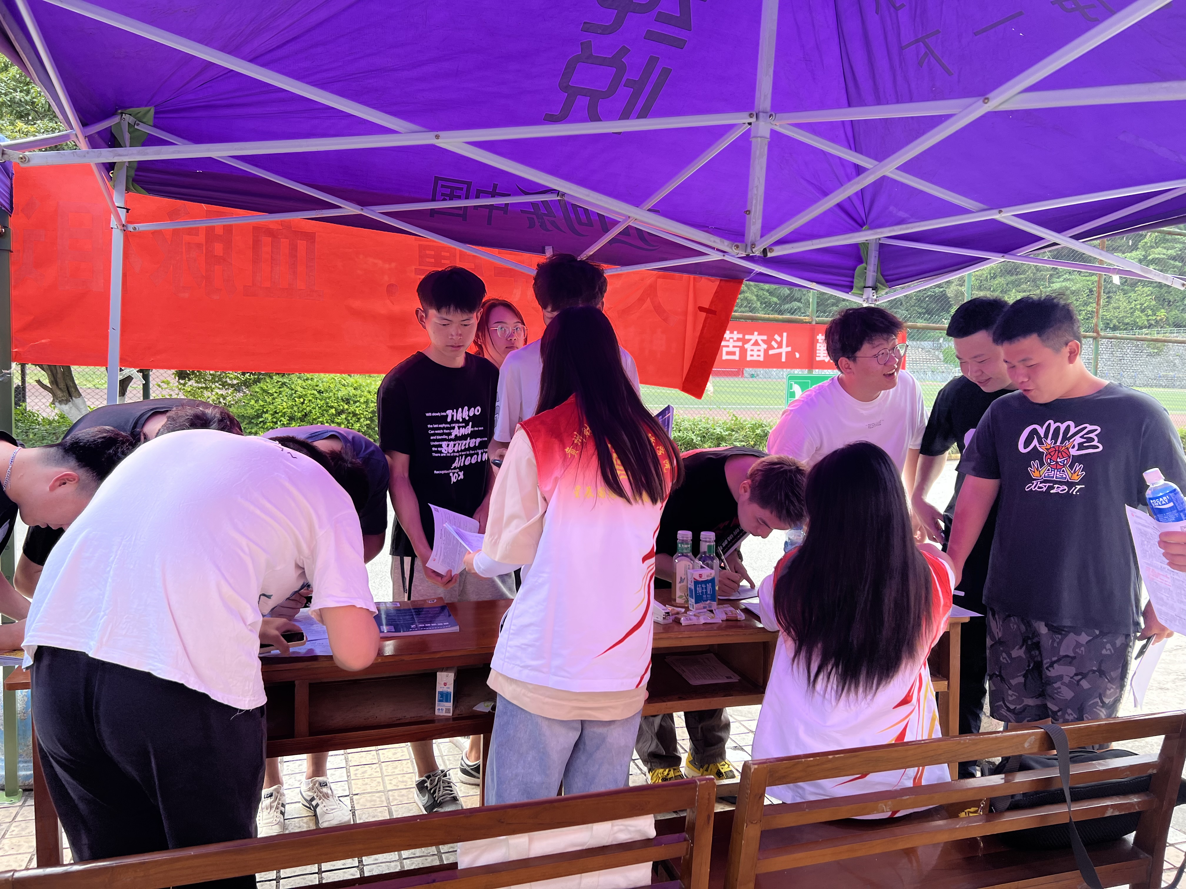 志愿者向同学们宣传无偿献血知识,动员和组织同学们积极参与到无偿献血活动中来。同学们在志愿者的指引下,有序地完成填写报名表、量血压、验血、抽血采样等流程。一个个签名、一张张红色的献血证,记录下同学们满腔热情和无私奉献。