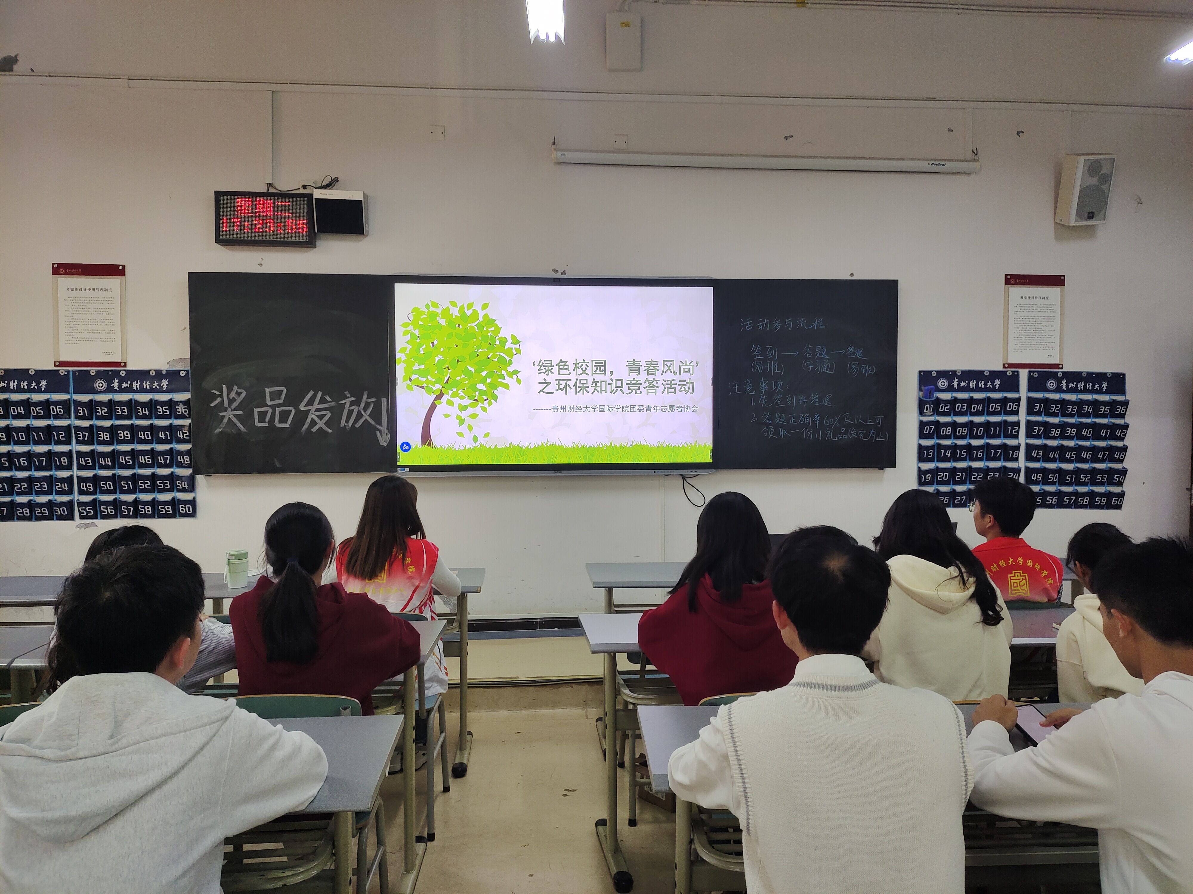 (yl23411 陈星妹 图文报道)为深入学习贯彻习近平新时代中国特色社会主义思想和党的二十大精神,进一步践行绿色发展理念,营造绿色和谐校园氛围,提高公司学子的环保意识和文明素养,在世界植树造林日来临之际,yl23411于10月31日在博学楼2-1举办“绿色校园,青春风尚”环保知识竞答活动。