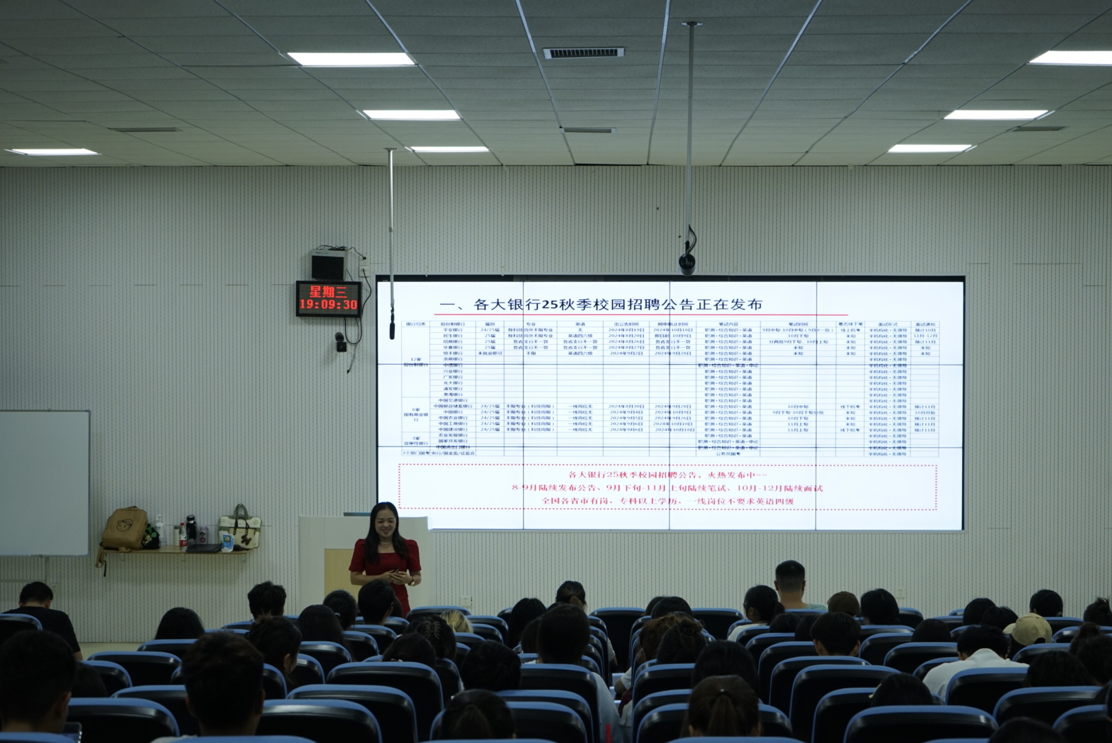 (yl23411 向成静楠 图文报道)为了帮助同学们深入了解当前就业市场趋势,特别是银行业的发展前景与岗位需求,助力2025届毕业生精准把握银行秋招机遇,提升就业竞争力,9月25日,yl23411邀请华图教育海玲溪老师,在乐学楼101教室举办“就业育人——2025银行秋招招考公告解读”讲座。