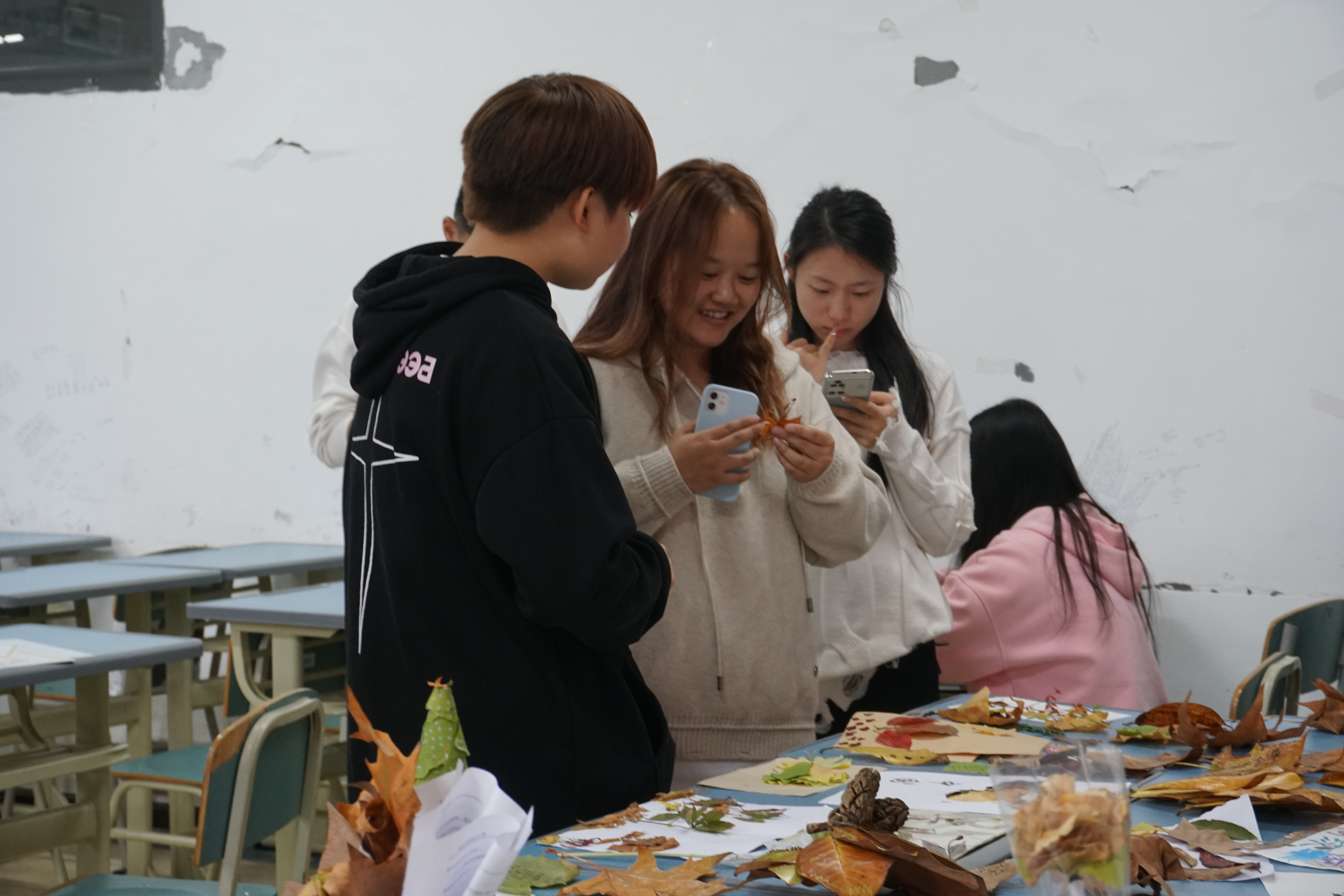 (yl23411 吴泳琳 报道|摄影 周罗涵知)为丰富校园文化生活,加强美育教育,让同学们有欣赏美、体验美的机会,有创造美的能力,10月22日,yl23411在博学楼2-15教室举办“秋林挽意,落叶再生”落叶创作活动。