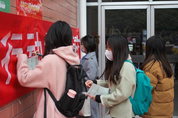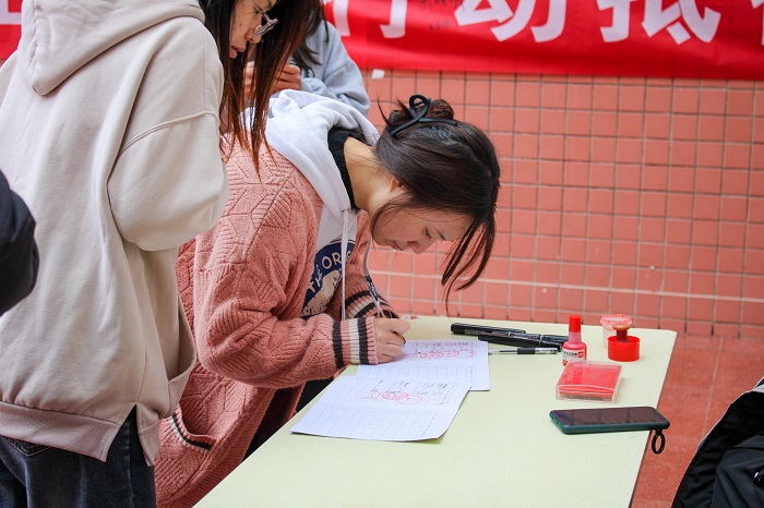 员工志愿者的组织下,活动井然有序地进行。员工志愿者从有关艾滋病的基本知识、如何预防艾滋病等方面向同学们进行讲解,包括艾滋病的传播方式、如何有效阻止艾滋病的传播等方面的内容。同学们郑重地在横幅上签下自己的名字。