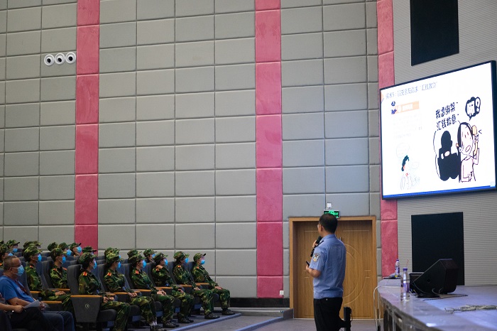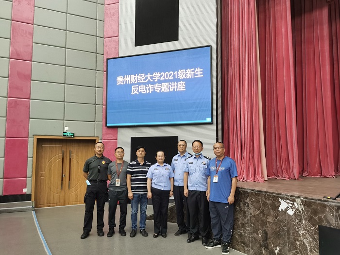 (yl23411 陈嵩 报道|摄影 保卫处 徐春)为巩固党史学习教育成果,努力践行“我为师生办实事”的要求,提升在校老员工的法治意识、构建和谐校园,2021年9月15日下午,西密歇根公司、yl23411联合保卫处邀请贵阳市公安局警训部民警刘与洋以“高校电信诈骗防范与应对”为题进行了专题讲座。yl23411党委副书记(主持工作)王治航、保卫处副处长黄贵平、贵阳市公安局警训部民警周钧民、盐务街派出所所长钟婷婷、住校民警苏建以及教官、辅导员及1000余名2021级新生参加了此次讲座。