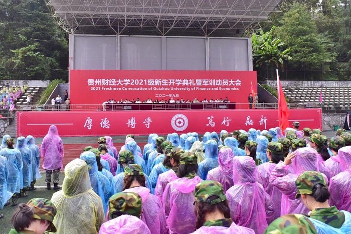 新生开学典礼在庄严的国歌中拉开帷幕。