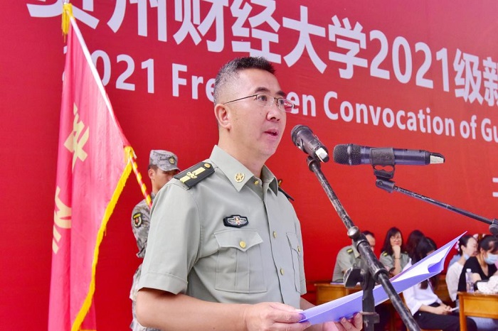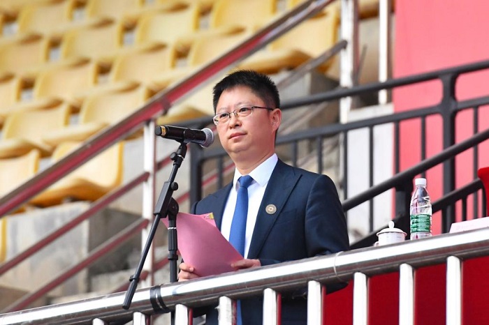 副董事长、军训师师长肖小虹讲话,她对参训新生和跟训教师提出了四点要求:一是统一思想,步调一致;二是严格训练、严格要求;三是严守纪律,争当先进;四是互相尊重,服从律例。并希望2021年新生以高标准完成各项训练任务,继往开来,再创新绩!