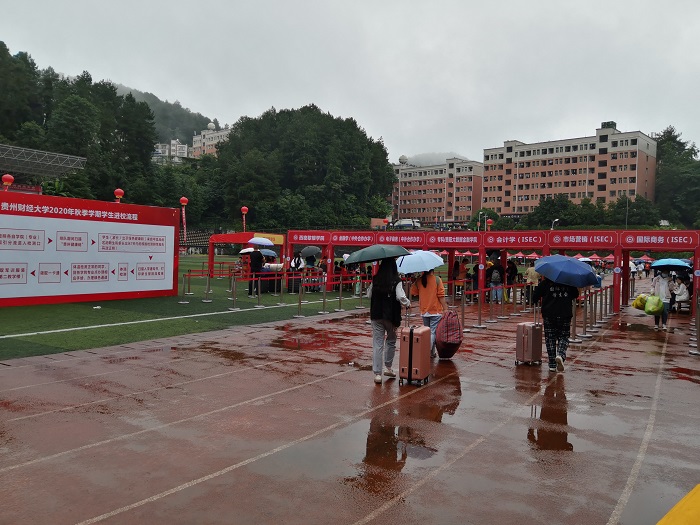贵州财经大公司党委副书记杨勇到鹿冲关校区检查指导2020级新生入校工作,认真检查了迎新工作中各方面安排,看望在场的迎新工作人员,代表公司领导亲切问候了2020级新同学,并亲手为新生们佩戴了院徽。公司高度重视迎新工作,党政班子全体成员深入迎新第一线全面参与和指导迎新工作。