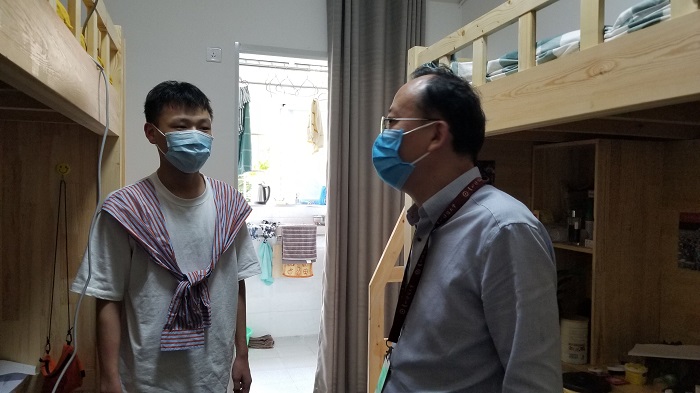 走访中,公司领导和辅导员亲切地询问了同学们的返校后生活和学习情况,叮嘱大家做好疫情期间的宿舍防护措施,告诉同学们要注意疫情期间的人身安全、食品卫生、防溺水、宿舍用水用电、防范网络诈骗等安全注意事项,鼓励大家要保持良好卫生,在疫情期间管理不松懈、内心不侥幸,努力打造良好的宿舍生活环境。