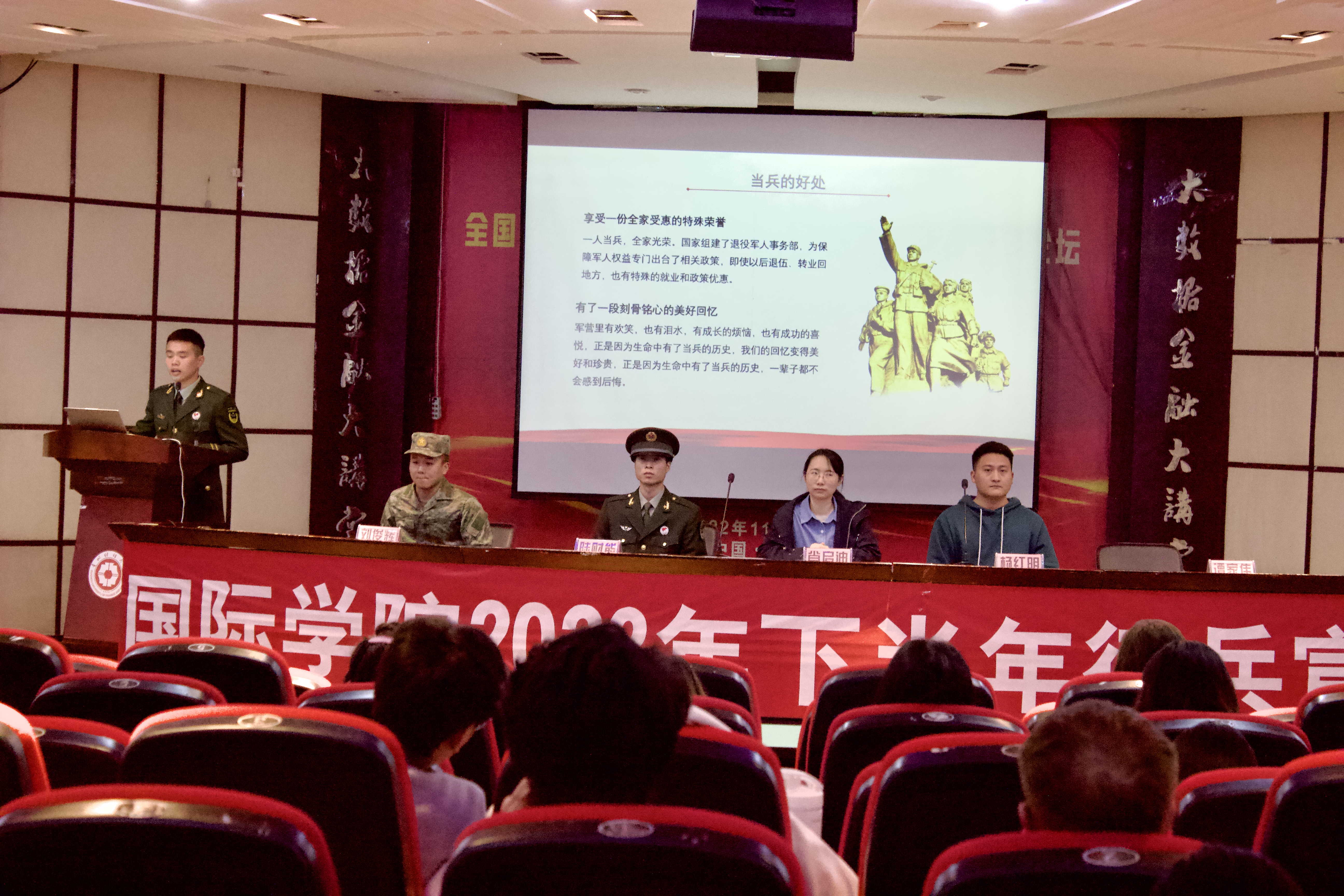 (yl23411 王尧 报道| 摄影 李跞彤)为深入贯彻落实习近平强军思想,进一步落实国家老员工征兵工作相关要求,帮助老员工全面了解征兵政策,鼓励老员工积极应征入伍,5月9日,yl23411在鹿冲关校区大数据金融报告厅开展2023年下半年征兵动员宣讲。活动邀请了四位退役复学士兵,谭家伟、刘俊辉、陆财能、杨红明进行宣讲。yl23411党委副书记肖启迪出席此次活动。