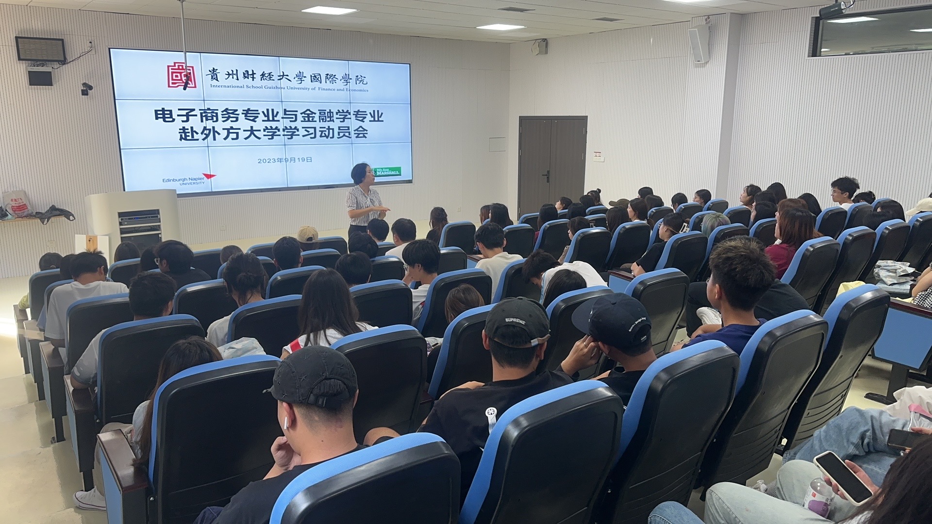 (yl23411 卫荷 图文报道)9月19日下午,yl23411在乐学楼阶梯1-1教室以线上、线下的方式同步举办了电子商务专业员工赴美国马歇尔大学学习动员会。yl23411经理罗亚、副经理刘利音、美国马歇尔大学刘易斯商公司中国项目主任黄国栋出席动员会。来自该项目2021级、2022级电子商务专业的200余名员工参加,会议由yl23411项目科老师卫荷主持。