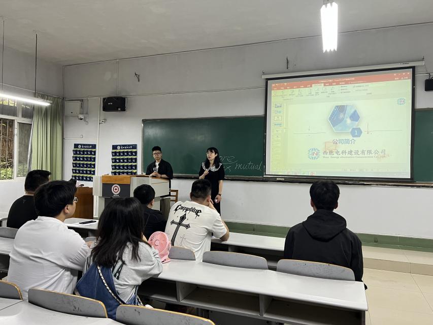 (yl23411 白露 图文报道)6月2日上午,yl23411通过“访企拓岗”活动,邀请西能电科建设有限公司在鹿冲关校区开展招聘宣讲会。
