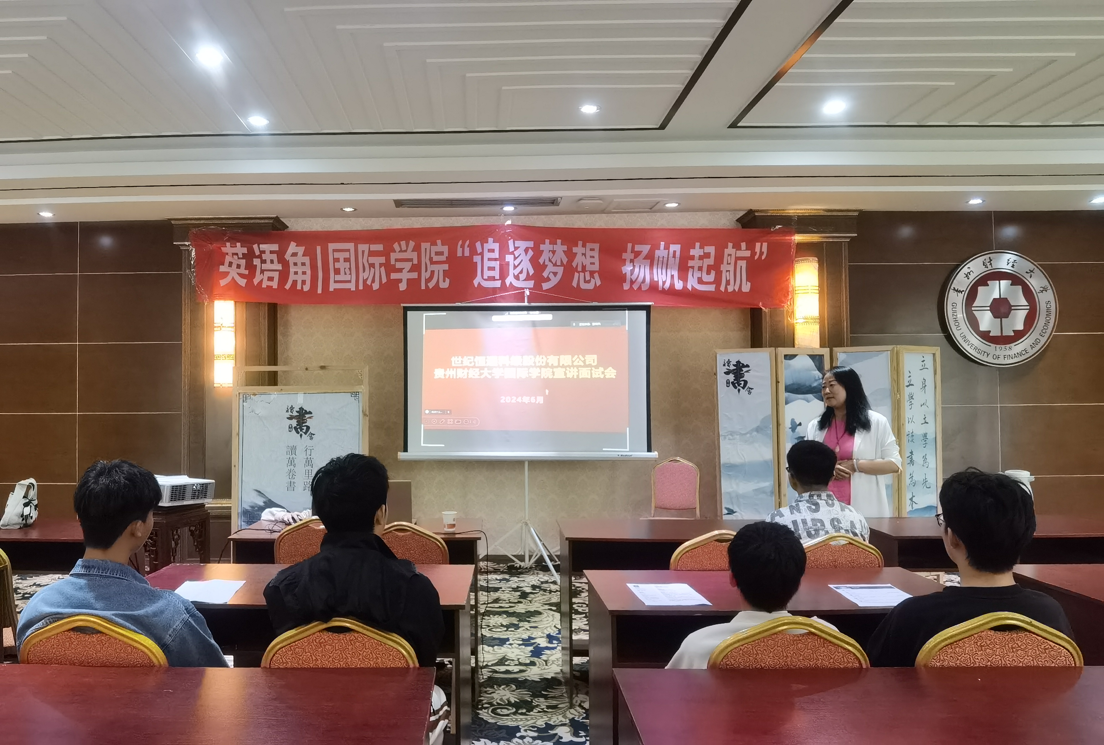 宣讲会上,世纪恒通人力资源部经理蒋超对公司的主营业务、发展现状等方面进行了介绍,并对本次招聘岗位及待遇进行了详细说明。同学们在了解本次招聘岗位后,积极投递简历应聘。