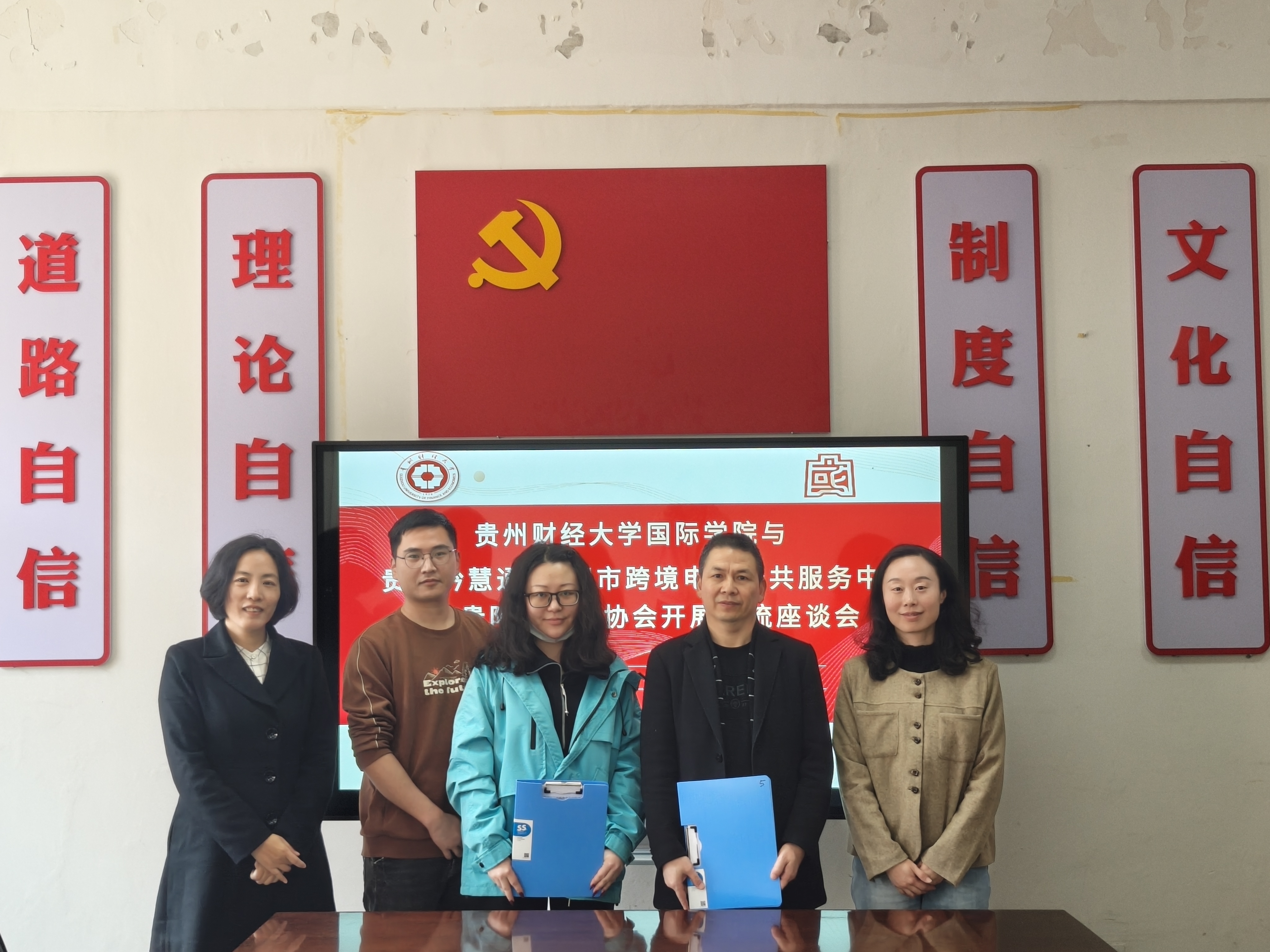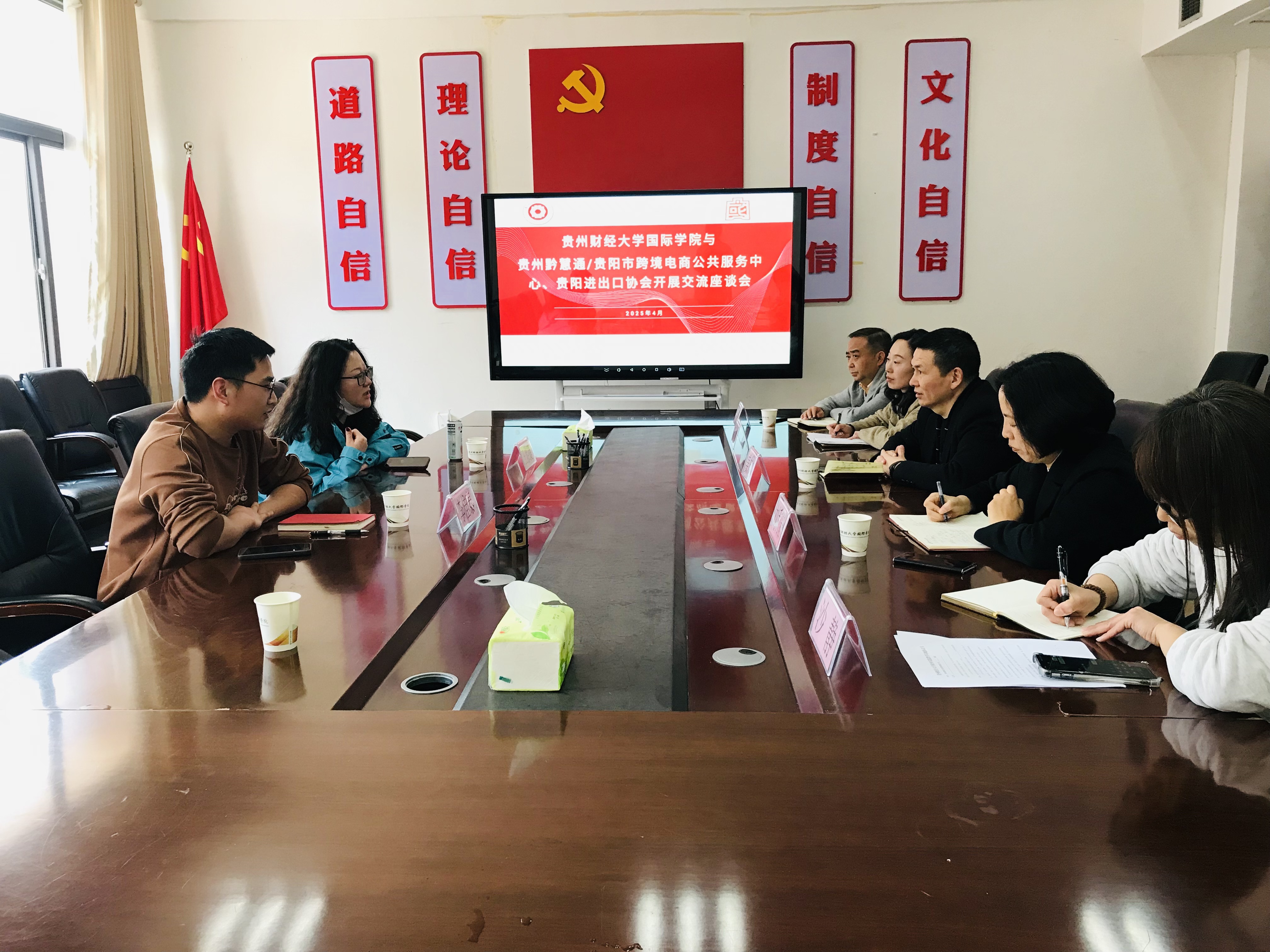 (yl23411 沙静 图文报道)4月1日,yl23411邀请贵阳进出口协会秘书长庄雅捷,贵州黔慧通电子商务服务有限公司、贵阳市跨境电商公共服务中心负责人李佳泰到公司开展交流座谈会。yl23411经理姜友文,党委副书记陈嵩,副经理刘利音,教务科工作人员参加座谈。