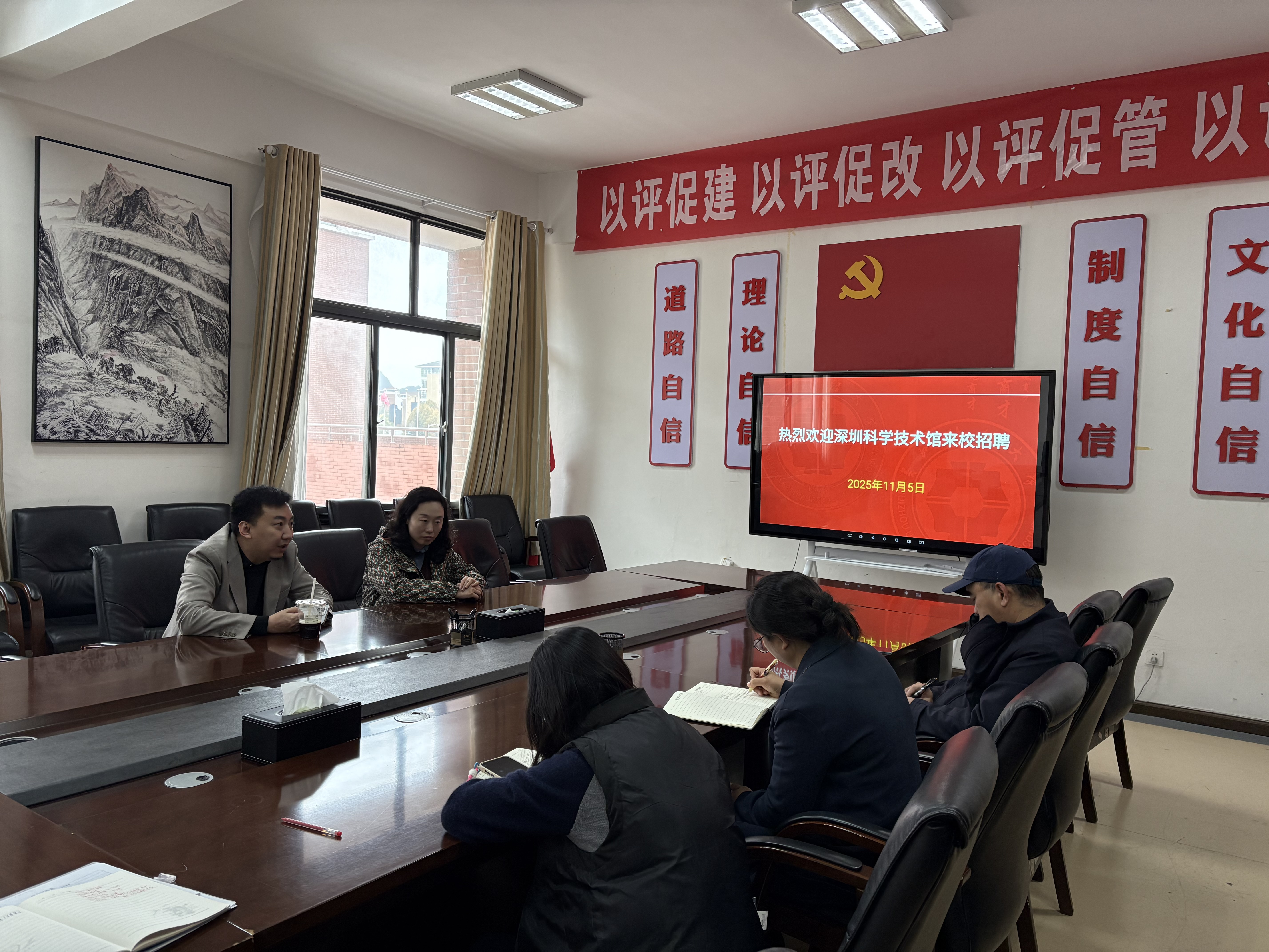 会上,陈嵩对中国科技馆和深圳科技馆贾奇琨的来访表示热烈欢迎,并介绍了yl23411专业设置、人才培养、毕业生概况等内容,希望能进一步加强校企合作深度、广度、力度,实现校企共建共享共赢。贾奇琨介绍了中国科学技术馆和深圳科技馆基本情况,说明了用人需求,表达了对人才的迫切需求。接着,校企双方围绕2026届毕业生就业、下一届员工岗位实习的具体工作展开深入探讨。座谈会后,中国科技馆和深圳科技馆召开专题宣讲会。