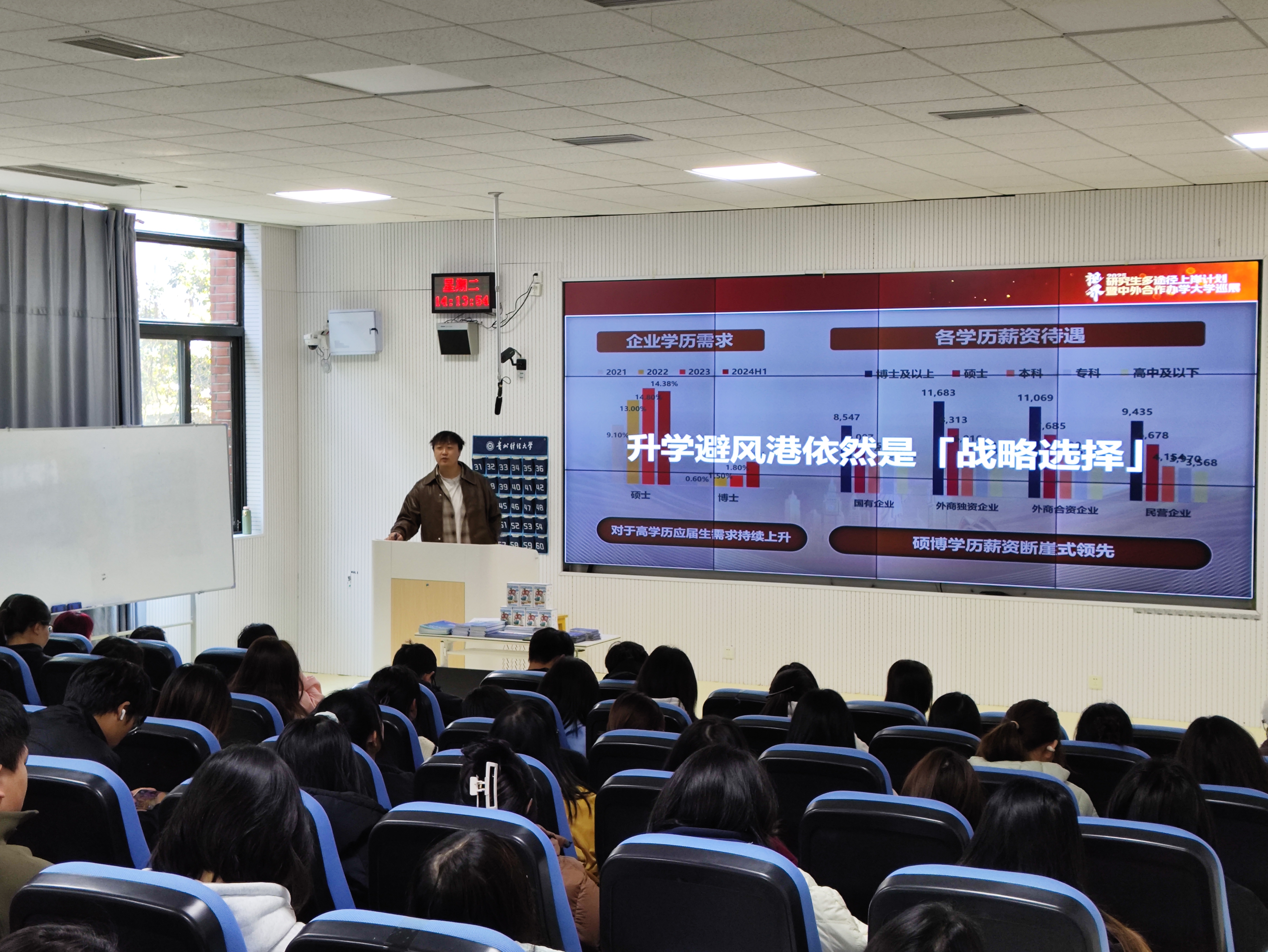 (yl23411 王婷婷 图文报道)为帮助同学们系统梳理考研与留学的规划路径,11 月 25 日,yl23411邀贵阳新东方国际教育讲师徐梓溢,在乐学楼 101 开展 “2025 研究生多途径上岸计划” 公益讲座。