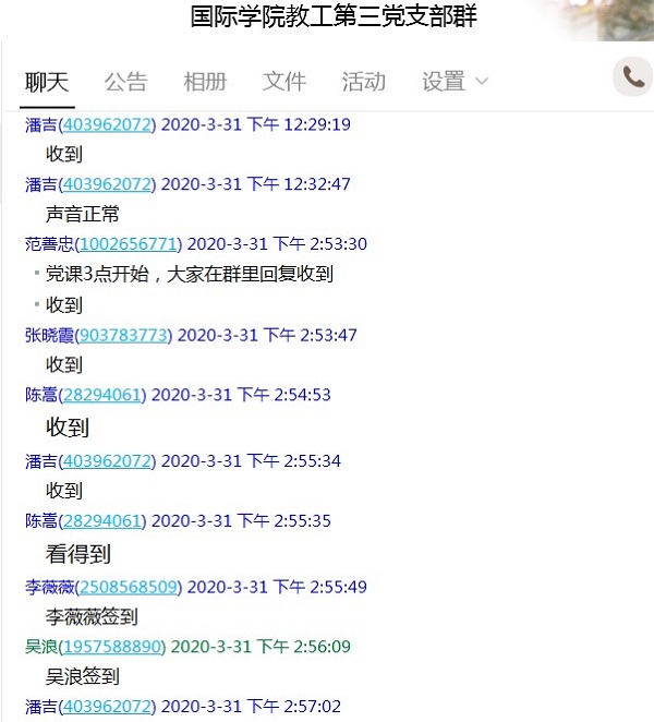 (yl23411 吴浪 图文报道)3月31日,yl23411教工第三党支部利用线上会议室开展了2020年第一季度网络党课学习,支部书记王瑛以“发挥党员先锋模范作用,强化使命担当”为题作专题党课讲授,支部全体党员进行了线上集中学习。